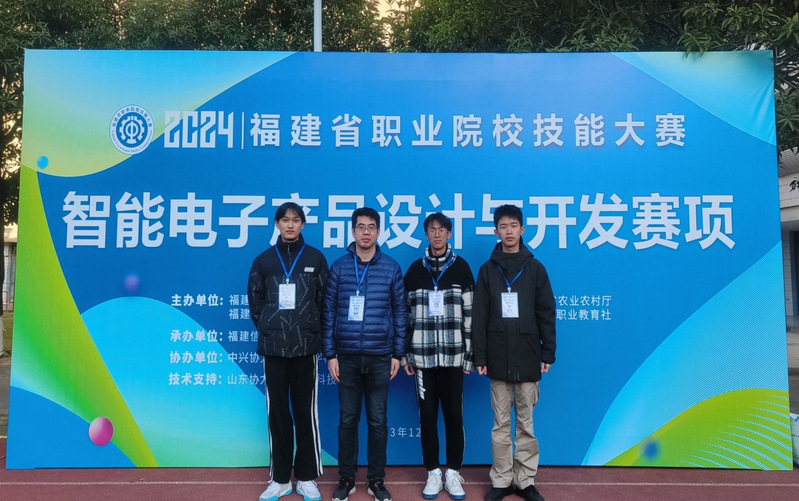 2023年12月23日,福建省職業(yè)院校技能大賽“智能電子產(chǎn)品設(shè)計與開發(fā)”賽項(xiàng)在福建信息職業(yè)技術(shù)學(xué)院舉行,來自全省九地市26支代表隊參賽。經(jīng)過緊張激烈的比賽,我院林恒青老師、鄭君輝、湯曹榕、余運(yùn)奇同學(xué)獲得團(tuán)體賽三等獎。