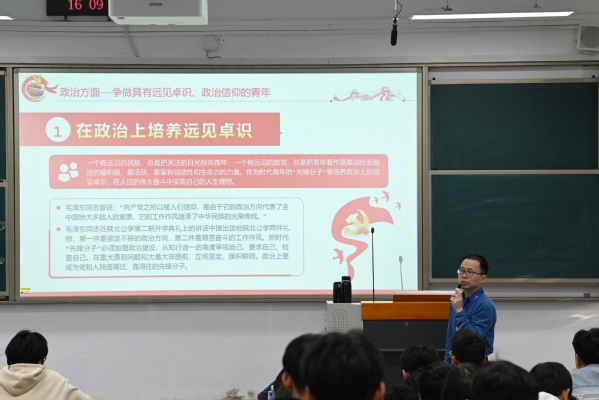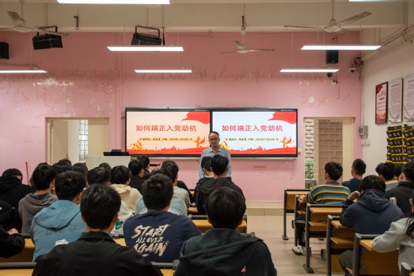 11月24日中午,機械與智能制造學院副院長陳貴清以《如何端正入黨動機》為主題,以中國共產(chǎn)黨的三大歷史貢獻、對黨的認識以及黨員的權利和義務、樹立正確的入黨動機和如何以實際行動爭取早日入黨這四個方面為入黨積極分子們詳細深入的闡述。