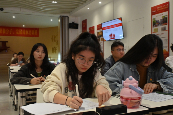 11月25日下午,機械與智能制造學院分黨校第八期入黨積極分子培訓班結業(yè)考試在福道園8號樓第一階梯教室進行。