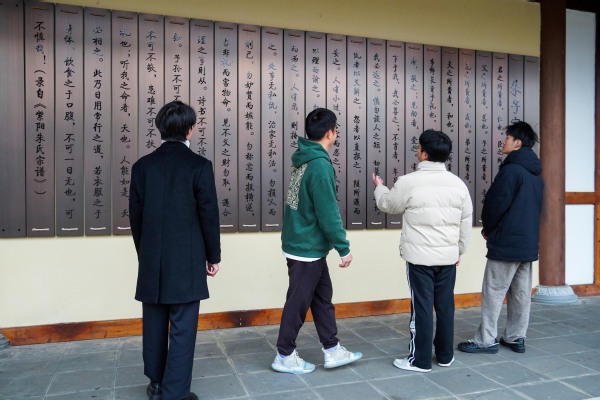 穿過道原堂,在道原堂背后的墻上,印著一面書簡(jiǎn)造型的《朱子家訓(xùn)》,吸引隊(duì)員們駐足觀看,細(xì)細(xì)品味朱子治家、做人思想的濃縮?!吨熳蛹矣?xùn)》精辟闡明了修身立德治家之道。其中,許多內(nèi)容蘊(yùn)含著中國(guó)傳統(tǒng)文化的優(yōu)秀特點(diǎn)。