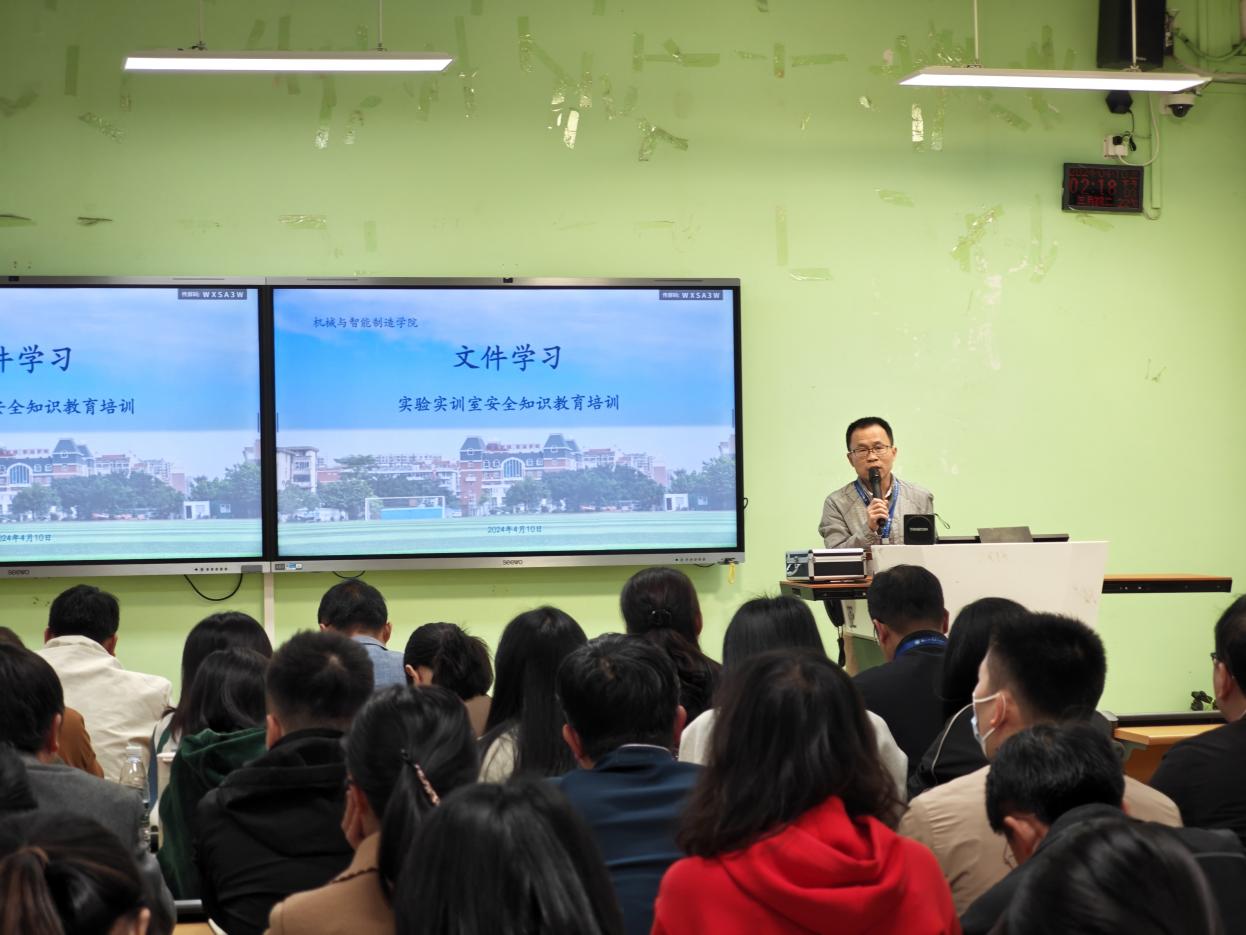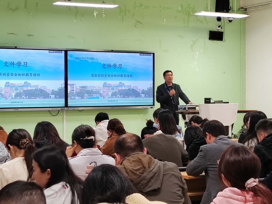 4月10日下午在2# 1-2教室召開(kāi)機(jī)械與智能制造學(xué)院實(shí)驗(yàn)實(shí)訓(xùn)室安全知識(shí)教育培訓(xùn)。全體教職工參加了培訓(xùn),培訓(xùn)由楊開(kāi)懷院長(zhǎng)主持。
