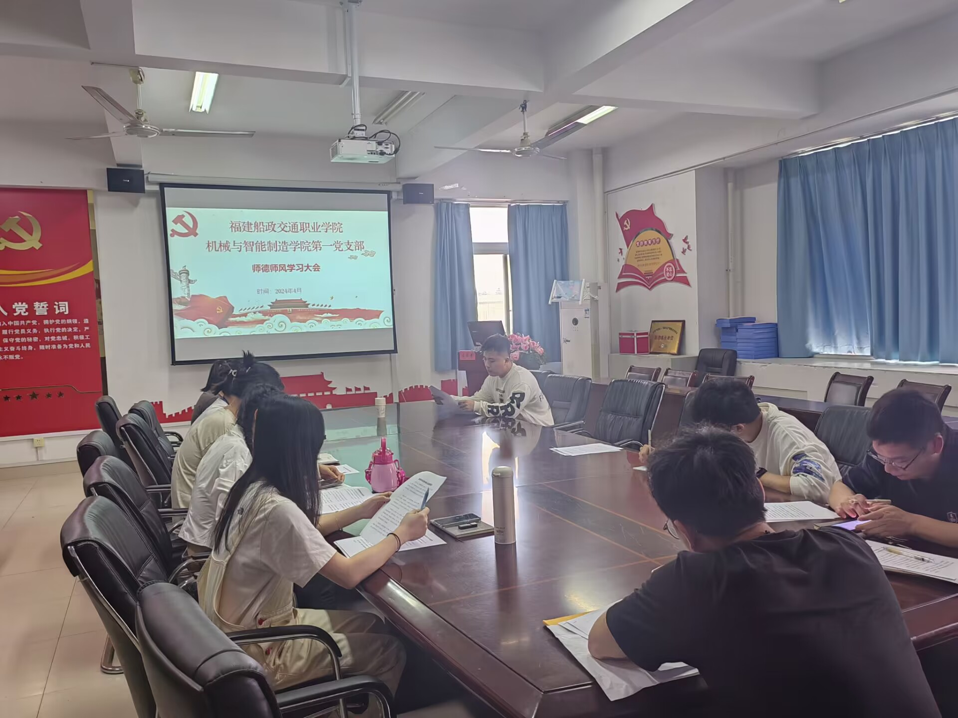 2024年4月23日,機(jī)械與智能制造學(xué)院第一黨支部在26號樓305召開師德師風(fēng)學(xué)習(xí)大會,集中學(xué)習(xí)了《高等學(xué)校教師職業(yè)道德規(guī)范》。