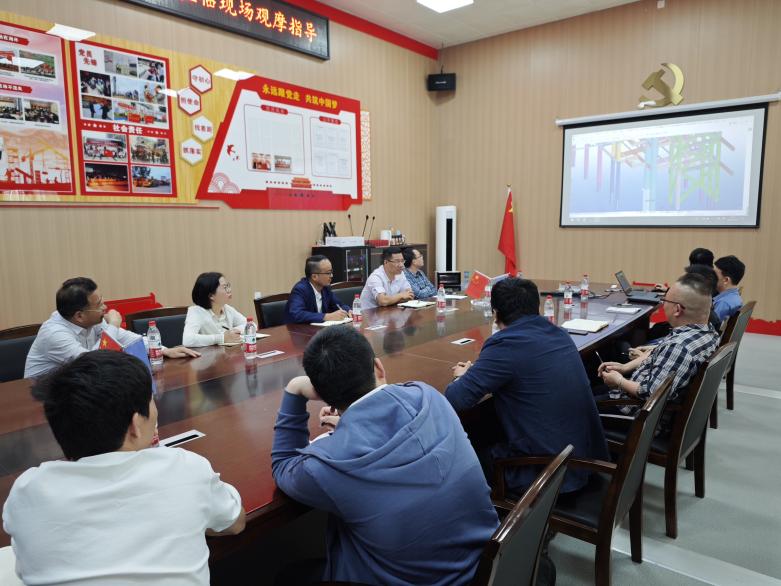 展廳參觀結束后,雙方在項目會議室共同交流商討合作事宜。省安公司對外合作中心趙凱主任表示,項目的安裝工作正在緊密籌劃布置當中,在本月底即將正式由土建轉安裝,希望機械學院能在定位放線、登高作業(yè)、高強螺栓安裝、鋼結構焊接等現場項目中找到技術突破口,為企業(yè)施工降本增效助力。