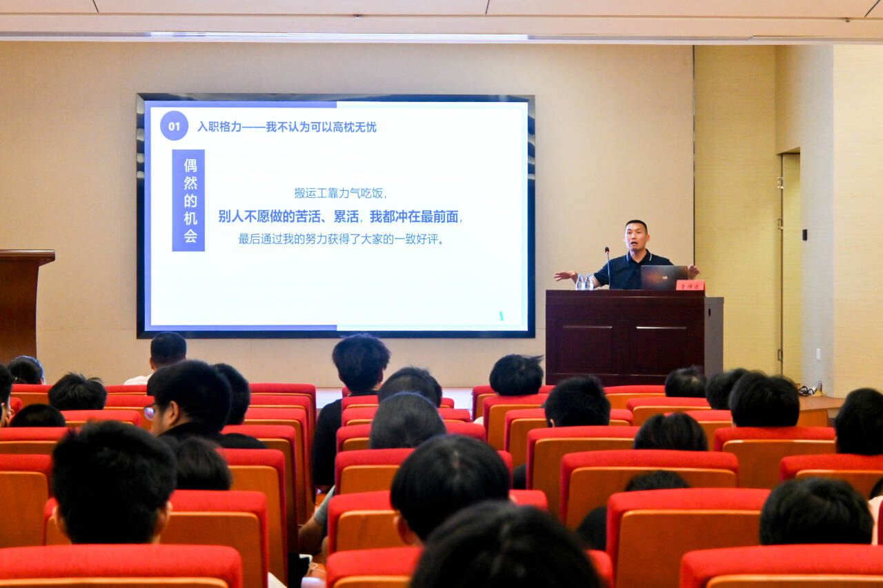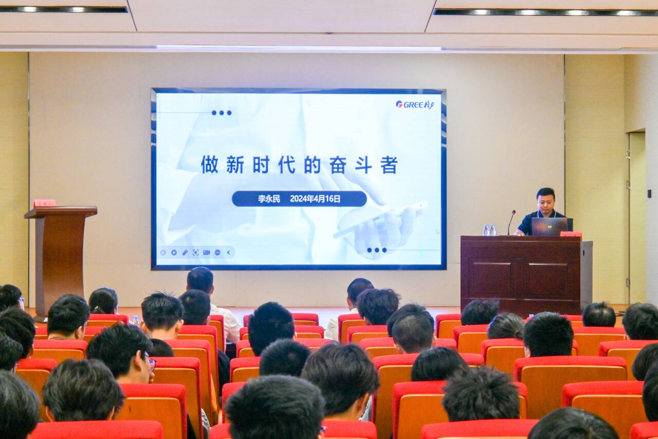 結束了精彩絕倫的叉車技能展示后,曹祥云技能大師為我院師生作了題為“‘叉車大王’的堅持與熱愛”的主題講座,深刻闡釋了“何為時代楷模”、“何為工匠精神”,他圍繞入職格力前后的個人經歷,培訓學習、團隊管理等方面的心路歷程展開分享并鼓勵同學們要將技能報國的夢想和信念根植于心中,將工匠精神融入日常的學習實踐中,精益求精、專心致志,在平凡崗位上做出不平凡的業(yè)績,爭當新時代的奮斗者。