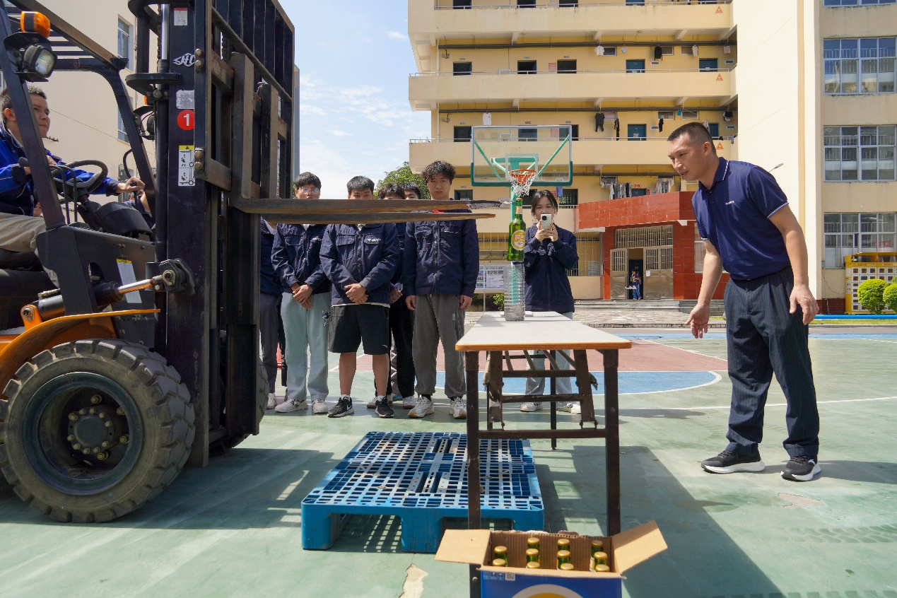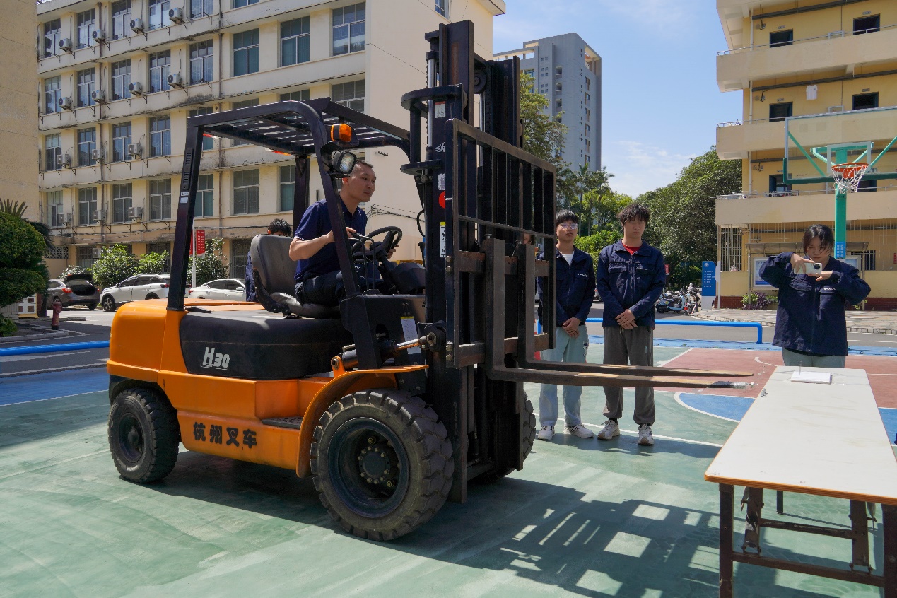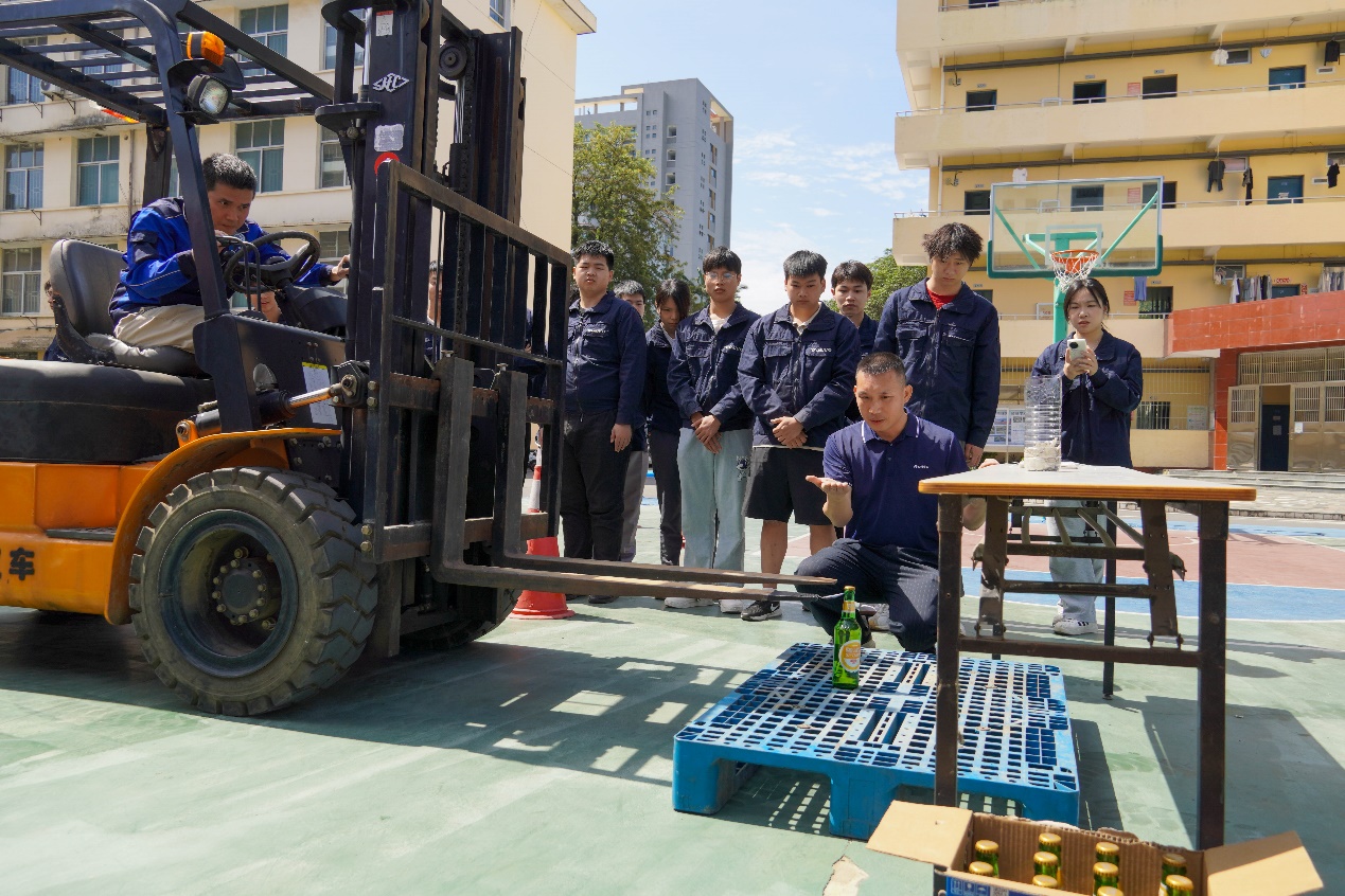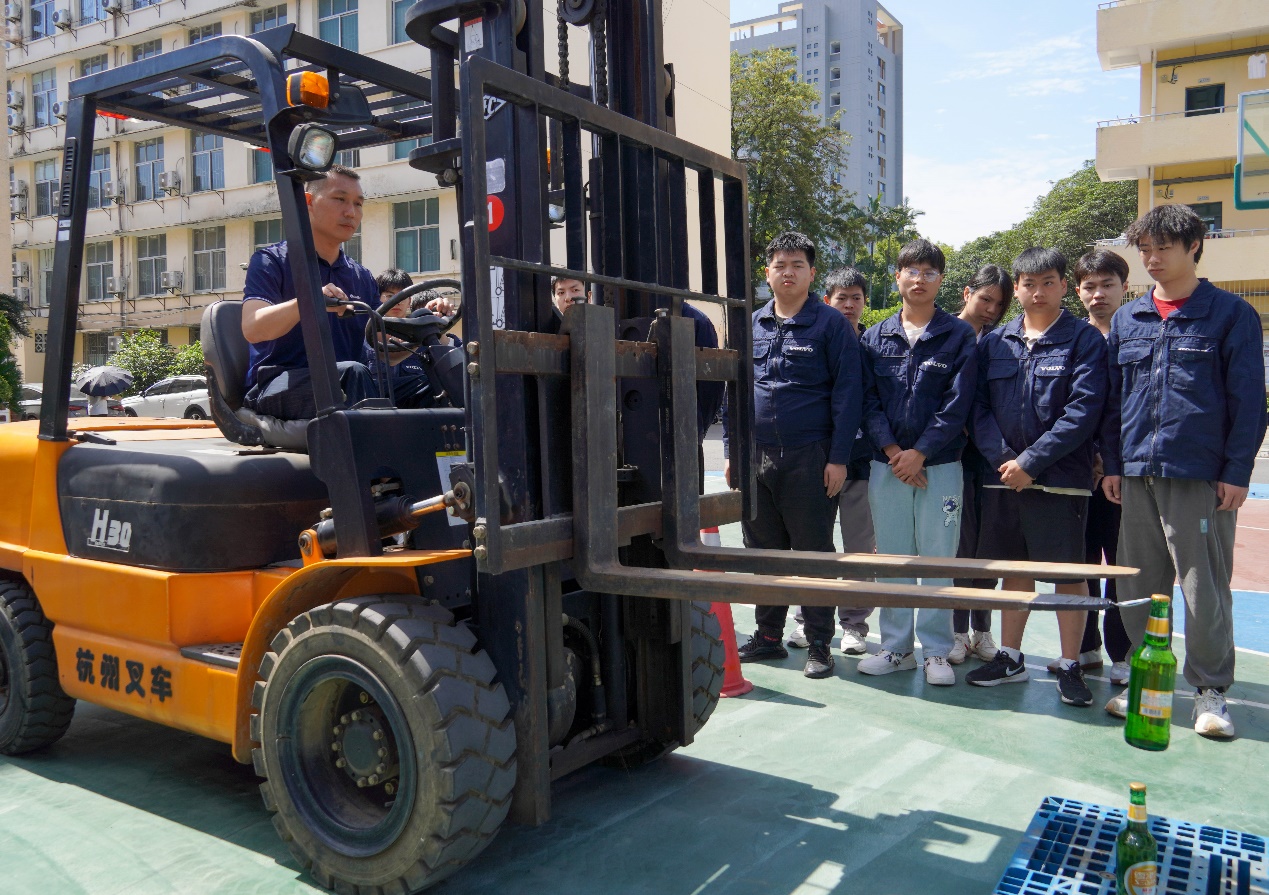 吉尼斯叉車技術紀錄成功挑戰(zhàn)者、全國叉車技能冠軍曹祥云技能大師在福道園工程機械與港口設備實訓室為同學們進行了一場精彩絕倫的叉車技能現(xiàn)場教學?!安孳囘\酒瓶、叉車開瓶蓋、叉車疊螺母、叉車穿針孔”等CCTV-1《挑戰(zhàn)不可能》節(jié)目中的極限絕活將曹祥云大師精湛的叉車技術展現(xiàn)得淋漓盡致。在教學過程中,曹祥云大師還親自指導師生進行叉車叉運木箱,倒車繞樁等實操項目,并就叉車駕駛“快、準、穩(wěn)”等綜合技術水平的練就進行了生動的講解。他勉勵同學們要堅定走技能成才、技能報國之路,珍惜學習時光,努力學習、積極實踐、苦練內功,掌握扎實專業(yè)理論與過硬專業(yè)技術本領,全面提升自身綜合素質,用時不我待的人生態(tài)度書寫匠心筑夢的青春篇章。
