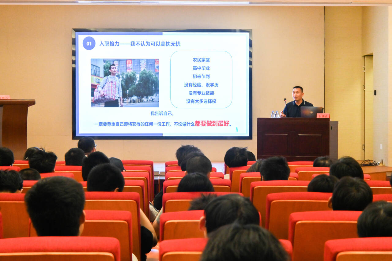 活動首先由全國技術能手李永民大師作題為“做新時代的奮斗者”的專題講座。他圍繞個人成長之路與企業(yè)發(fā)展的關系,結合長期躬耕一線的實踐經歷,用生動的案例、質樸的語言和同學們分享了勞模工匠精神的養(yǎng)成、敬業(yè)奉獻精神的鍛造、服務人民情懷的鑄就,勉勵同學們要勤于學習、勇于實踐,立足工作崗位,以技立身、以技報國,在博學強識中夯實基礎,在勤思創(chuàng)新中提升能力,在實踐實干中增長本領,不斷提高綜合素質,在全面建設社會主義現(xiàn)代化國家的火熱實踐中發(fā)揮職教人的典型、示范帶動作用。