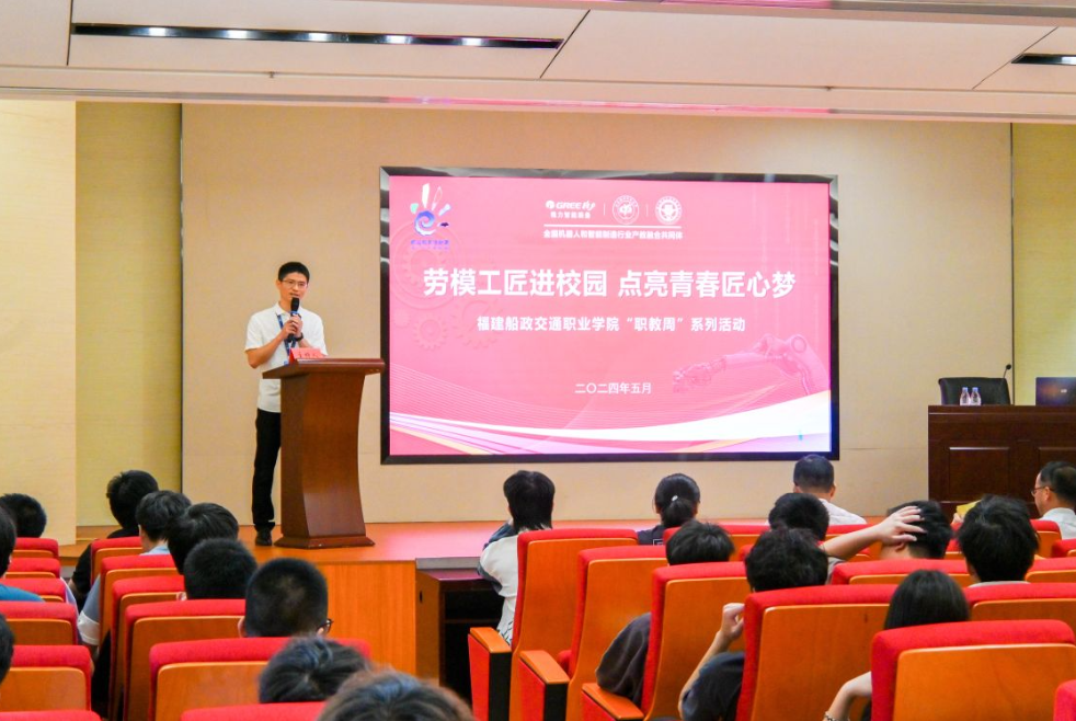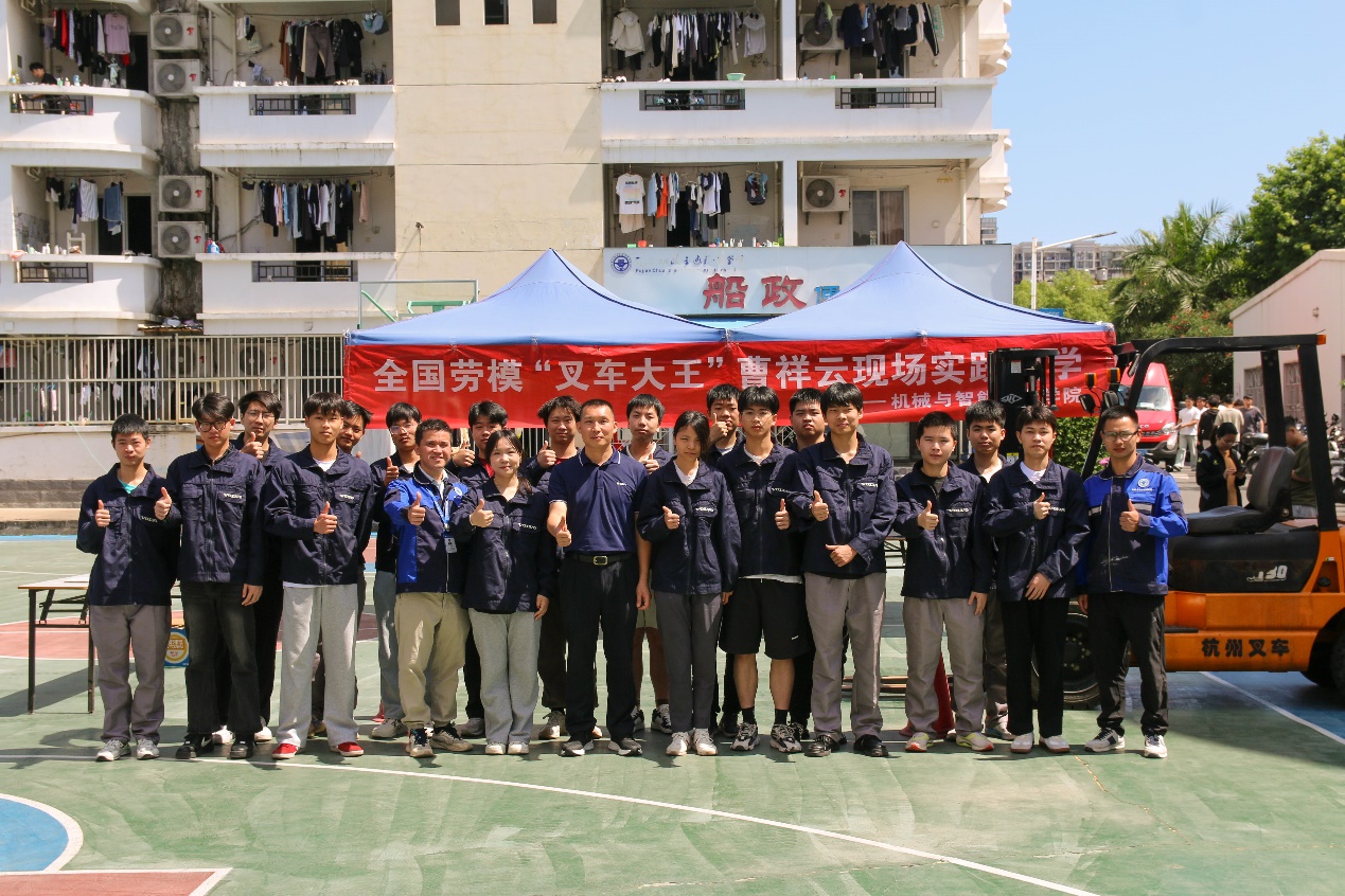 為深入貫徹落實習近平總書記關于職業(yè)教育的重要講話和重要指示批示精神,全面落實立德樹人根本任務,大力培養(yǎng)高素質技能人才,充分發(fā)揮勞模工匠在職業(yè)教育中的精神感召和教育榜樣作用,5月17日,福建船政交通職業(yè)學院機械與智能制造學院舉辦了“勞模工匠進校園 點亮青春匠心夢”——職教周系列活動?;顒友埩巳珖夹g能手——珠海格力電器股份有限公司設備科班長李永民及勞模“叉車大王”——珠海格力電器股份有限公司叉車駕駛員曹祥云兩位優(yōu)秀勞模典范和工匠大師,活動由機械與智能制造學院副院長曾思通主持。