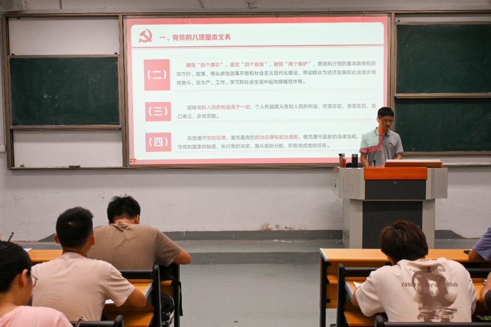 2024年6月19日晚,機(jī)械與智能制造學(xué)院副院長曾思通作題為《牢記義務(wù)權(quán)利,爭做先鋒模范》專題培訓(xùn)。課程詳細(xì)講解了《中國共產(chǎn)黨章程》中黨員必須履行的八項(xiàng)義務(wù)和享有的八項(xiàng)權(quán)利,讓入黨積極分子們深刻認(rèn)識到履行義務(wù)是正確行使權(quán)利的前提,正確行使權(quán)利是履行義務(wù)的保證。
