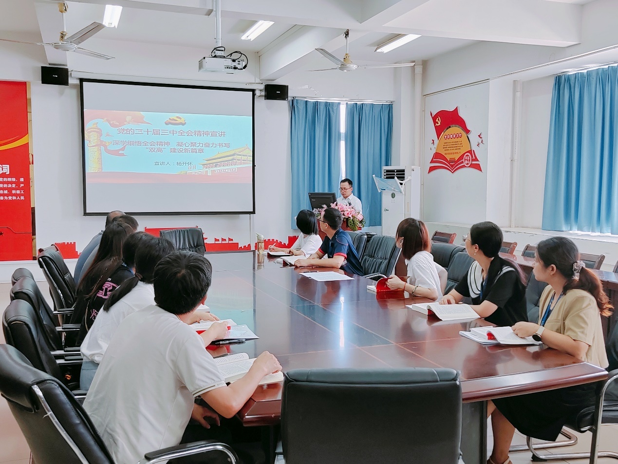楊開懷同志強調(diào),學(xué)習(xí)好貫徹好這次全會精神,是當(dāng)前和今后一個時期全黨全國的一項重大政治任務(wù),要求支部全體黨員要深入學(xué)習(xí)領(lǐng)會黨的二十屆三中全會精神,緊密團(tuán)結(jié)在以習(xí)近平同志為核心的黨中央周圍,緊緊圍繞全會確定的目標(biāo)任務(wù),立足教育工作實際,解放思想、更新觀念、敢闖敢試、先行先試,始終把改革精神、改革思維、改革方法貫穿各項工作全過程,以勇立潮頭、勇當(dāng)先鋒的志向和氣魄,奮力書寫“雙高”建設(shè)新篇章,推動全會精神在教育工作中落地生根、開花結(jié)果。