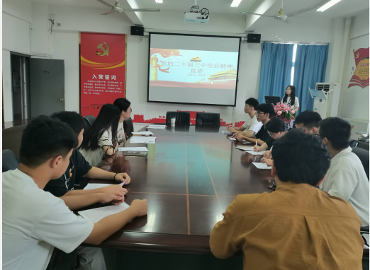 中國共產(chǎn)黨第二十屆中央委員會第三次全體會議于2024 年7月15日至18日在北京舉行。全會聽取和討論了習(xí)近平總書記受中央政治局委托所作的工作報告,審議通過了《中共中央關(guān)于進一步全面深化改革、推進中國式現(xiàn)代化的決定》。9月12日,機械與智能制造學(xué)院第六黨支部書記吳夢煒在26#305召開進行黨的二十屆三中全會精神宣講,全體支部成員參加。