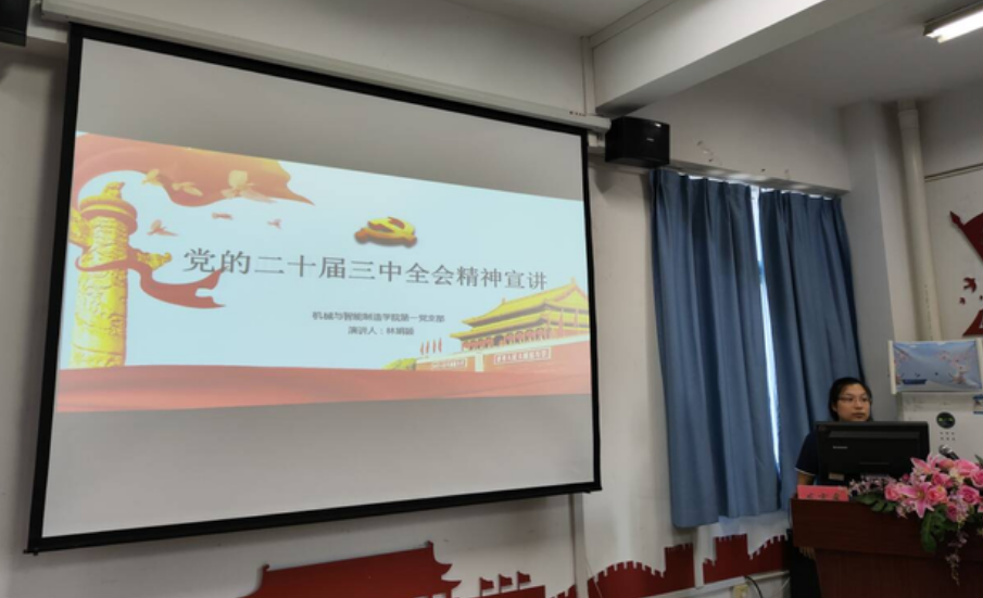 機(jī)械與智能制造學(xué)院第一黨支部2024年9月13日于福道園26#305會議室學(xué)習(xí)黨的二十屆三中全會精神。由支部書記林娟穎進(jìn)行宣講。