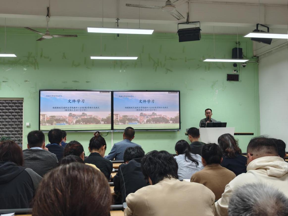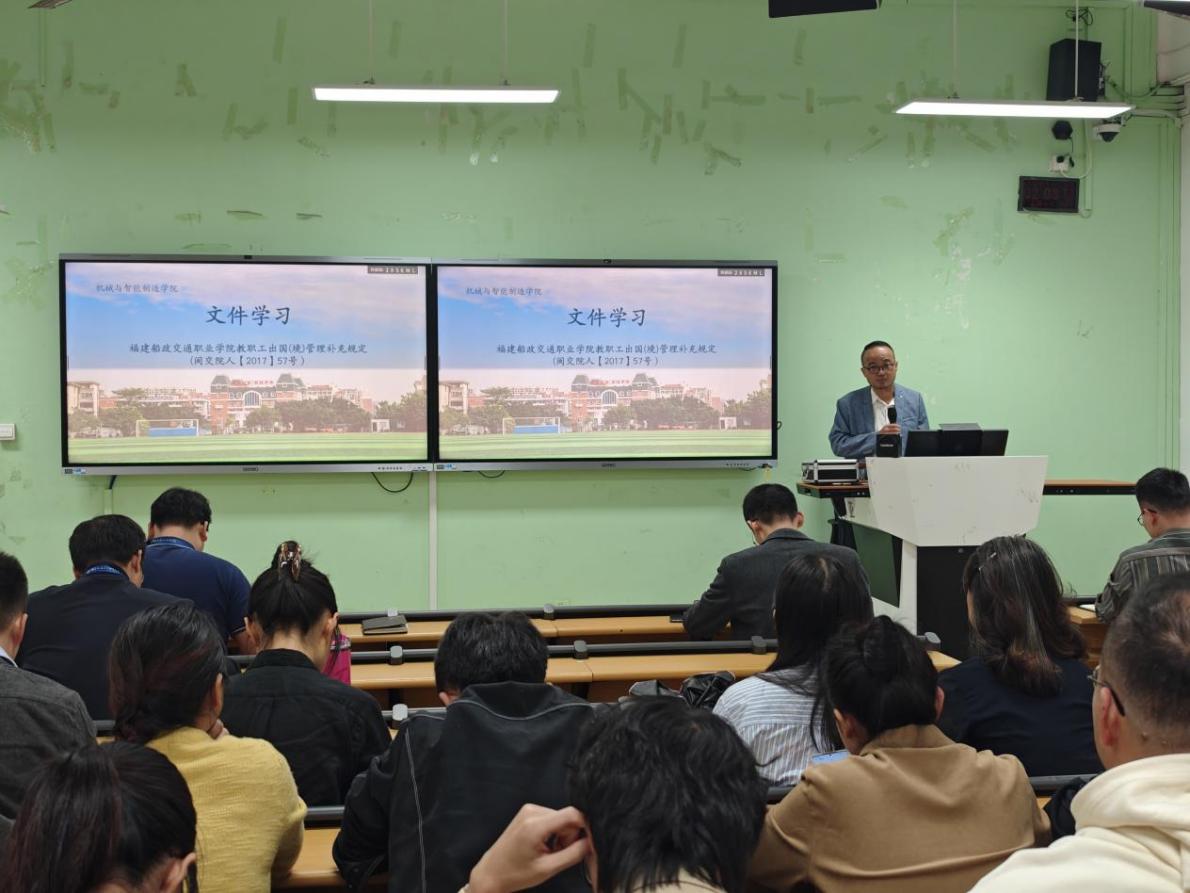為進(jìn)一步規(guī)范我院教職工出國(境)管理工作,2024年11月13日,機(jī)械與智能制造學(xué)院組織全體教職工召開專題學(xué)習(xí)會議,會議由陳貴清副院長領(lǐng)學(xué),全體教職員工參加了學(xué)習(xí)。