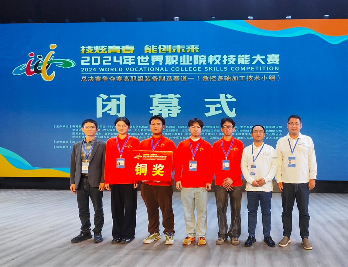 10月26日至30日,2024年世界職業(yè)院校技能大賽總決賽爭(zhēng)奪賽高職組裝備制造賽道一(數(shù)控多軸加工技術(shù)小組)在四川工程職業(yè)技術(shù)大學(xué)舉行。來(lái)自全國(guó)30個(gè)?。▍^(qū)、市)的59個(gè)參賽隊(duì)、199名參賽選手同臺(tái)競(jìng)技、展示風(fēng)采。由福建船政交通職業(yè)學(xué)院機(jī)械與智能制造學(xué)院曾思通副院長(zhǎng)帶隊(duì),陳太麗、謝祖強(qiáng)老師為指導(dǎo),陳永鑫、張煒靚、連鑫峰、解烜組成的參賽隊(duì)代表福建省出戰(zhàn),憑借扎實(shí)的專業(yè)功底和出色的團(tuán)隊(duì)協(xié)作能力,勇奪銅獎(jiǎng)。