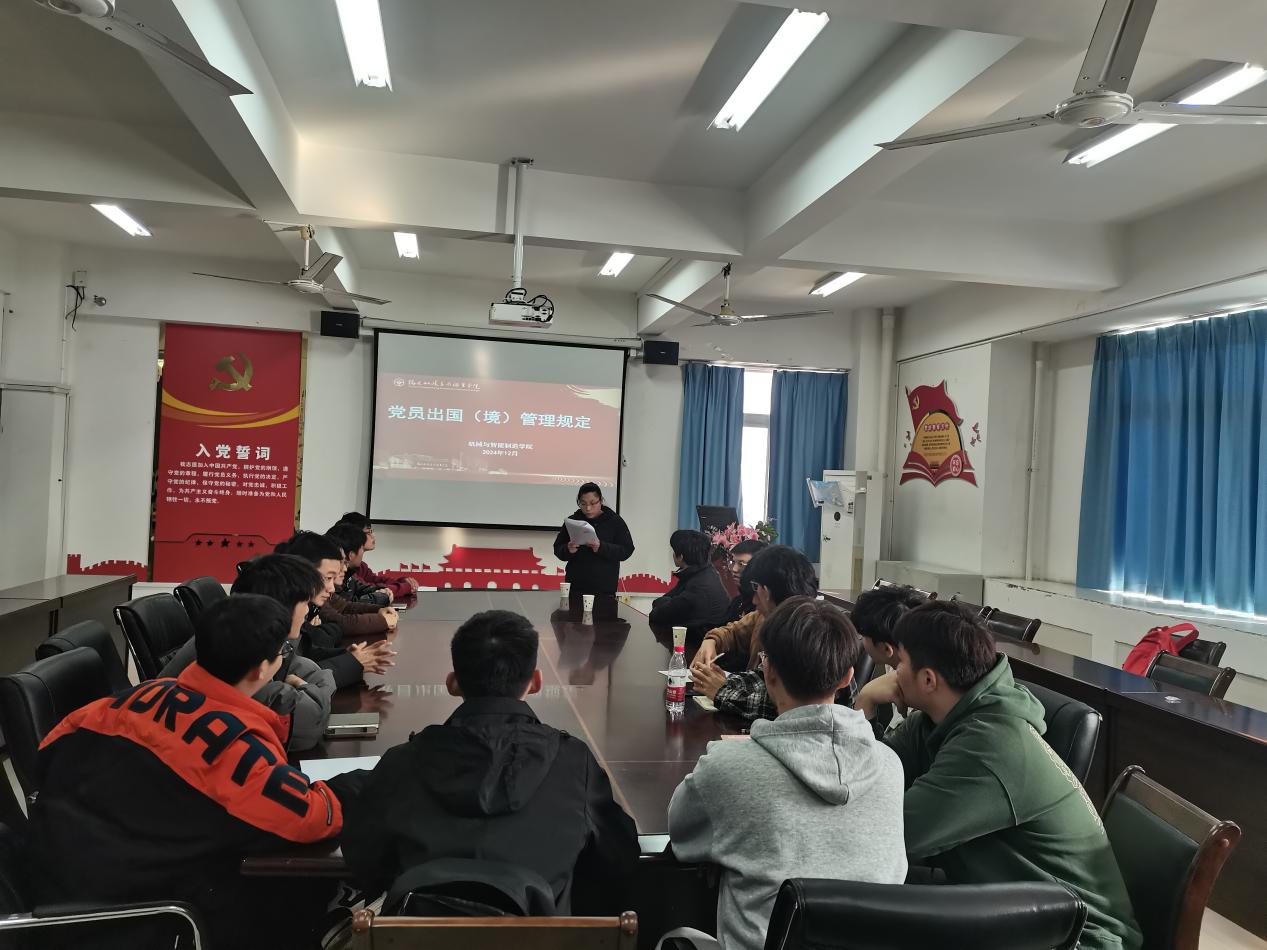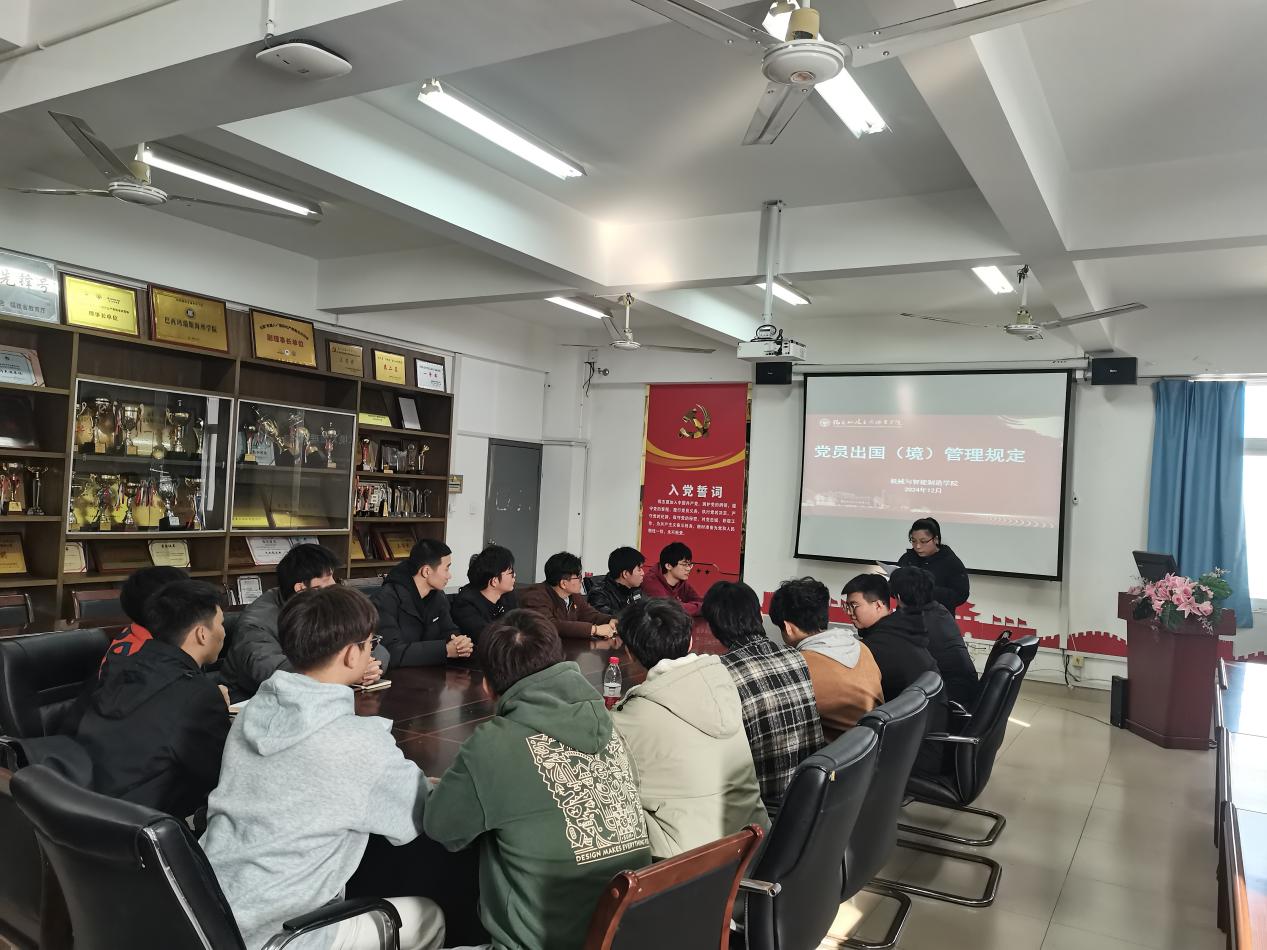 為做好學院黨員出國(境)管理工作,提升我院教育教學、科研和管理工作的正常秩序,12月20日,機械與智能制造學院組織全體學生黨員在26#305集中學習《福建船政交通職業(yè)學院教職工出國(境)管理規(guī)定(修訂)》,會議由第一支部書記林娟穎主持,全體學生黨員參加。