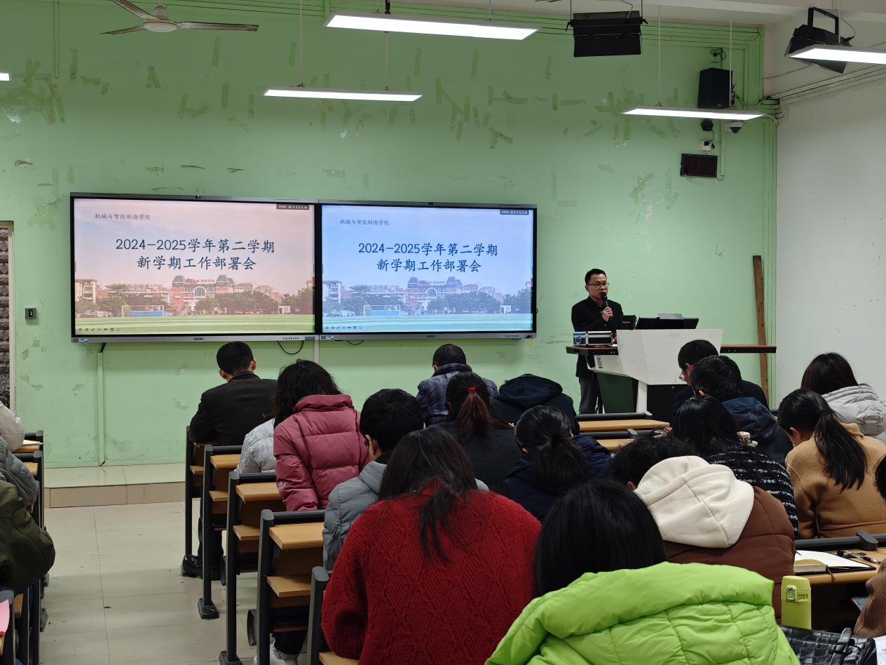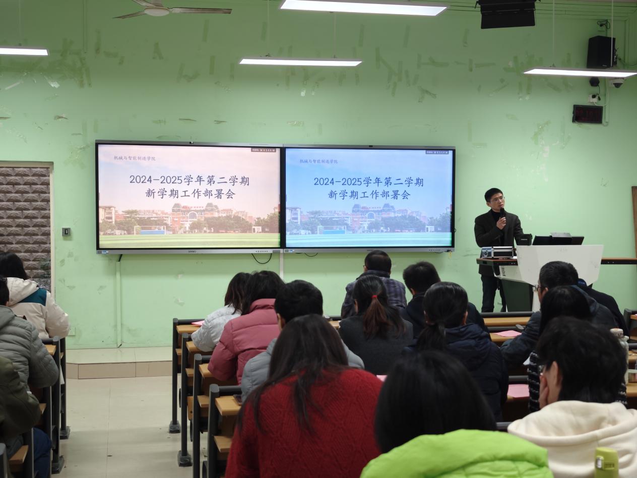 為明確新學期工作目標,統(tǒng)籌推進各項工作任務,2月19日下午,機械與智能制造學院在2號樓1-2召開2024-2025學年第二學期第一次全院大會暨新學期工作部署會。學院領(lǐng)導班子成員、全體教職工參加了會議。會議部署了2024-2025學年第二學期開學各項事宜和近期工作重點。