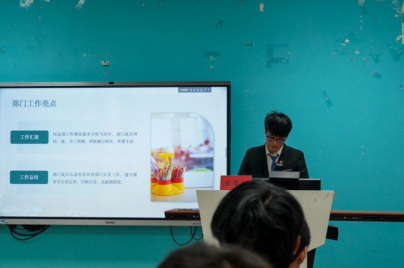 會上,各部門負(fù)責(zé)人以現(xiàn)場匯報的方式圍繞過去一年的工作開展情況、特色舉措與成效、不足反思與未來規(guī)劃進(jìn)行了述職。“亮數(shù)據(jù)、曬成績、比思路、明不足、提舉措.......”,各部門負(fù)責(zé)人用圖片、文字、數(shù)據(jù)等形式呈現(xiàn)了上一年度學(xué)院團(tuán)學(xué)工作的概況,內(nèi)容詳實(shí),充分展現(xiàn)了各部門的組織與活力,彰顯了學(xué)生干部在實(shí)踐中成長、在反思中進(jìn)步、在總結(jié)中提升的優(yōu)良傳統(tǒng)。