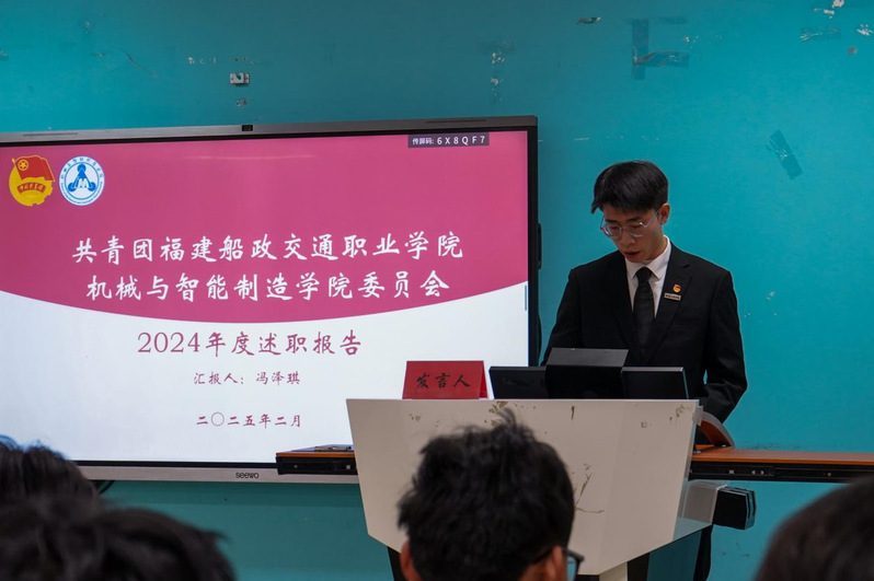 為深入踐行黨的二十大精神,積極響應(yīng)全國教育大會關(guān)于青年發(fā)展的戰(zhàn)略部署,同時進(jìn)一步加強(qiáng)學(xué)院團(tuán)學(xué)組織建設(shè)發(fā)展,推進(jìn)各部門之間的交流學(xué)習(xí),增強(qiáng)團(tuán)學(xué)組織的凝聚力。2025年2月19日下午,共青團(tuán)福建船政交通職業(yè)學(xué)院機(jī)械與智能制造學(xué)院委員會兩委學(xué)生干部述職大會在福道園2號樓1-1教室開展,出席此次會議的有機(jī)械與智能制造學(xué)院分團(tuán)委書記鄭茜,院分團(tuán)委副書記華銀,院分團(tuán)委組織委員楊榕,院分團(tuán)委宣傳委員官蕾,會議由院分團(tuán)委兼職副書記(學(xué)生)馮澤琪主持。