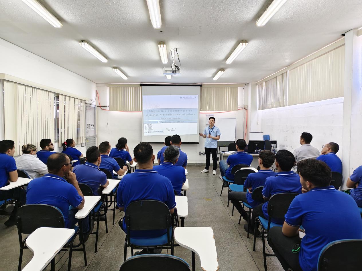 揭牌儀式后,福建船政交通職業(yè)學(xué)院教師團(tuán)隊(duì)為巴西基地員工開展為期6天的專業(yè)技能培訓(xùn)。課程設(shè)置液壓驅(qū)動(dòng)系統(tǒng)故障診斷、智能裝備電氣安全操作、工業(yè)機(jī)器人操作維護(hù)等模塊,采用“理論+實(shí)操”雙元教學(xué)模式,通過(guò)解剖液壓系統(tǒng)、電氣安全操作、電路故障排查維護(hù)等實(shí)踐訓(xùn)練,系統(tǒng)提升學(xué)員智能制造設(shè)備維護(hù)核心技能,同時(shí)為當(dāng)?shù)嘏嘤?xùn)中心實(shí)訓(xùn)基地建設(shè)提供實(shí)地指導(dǎo)。