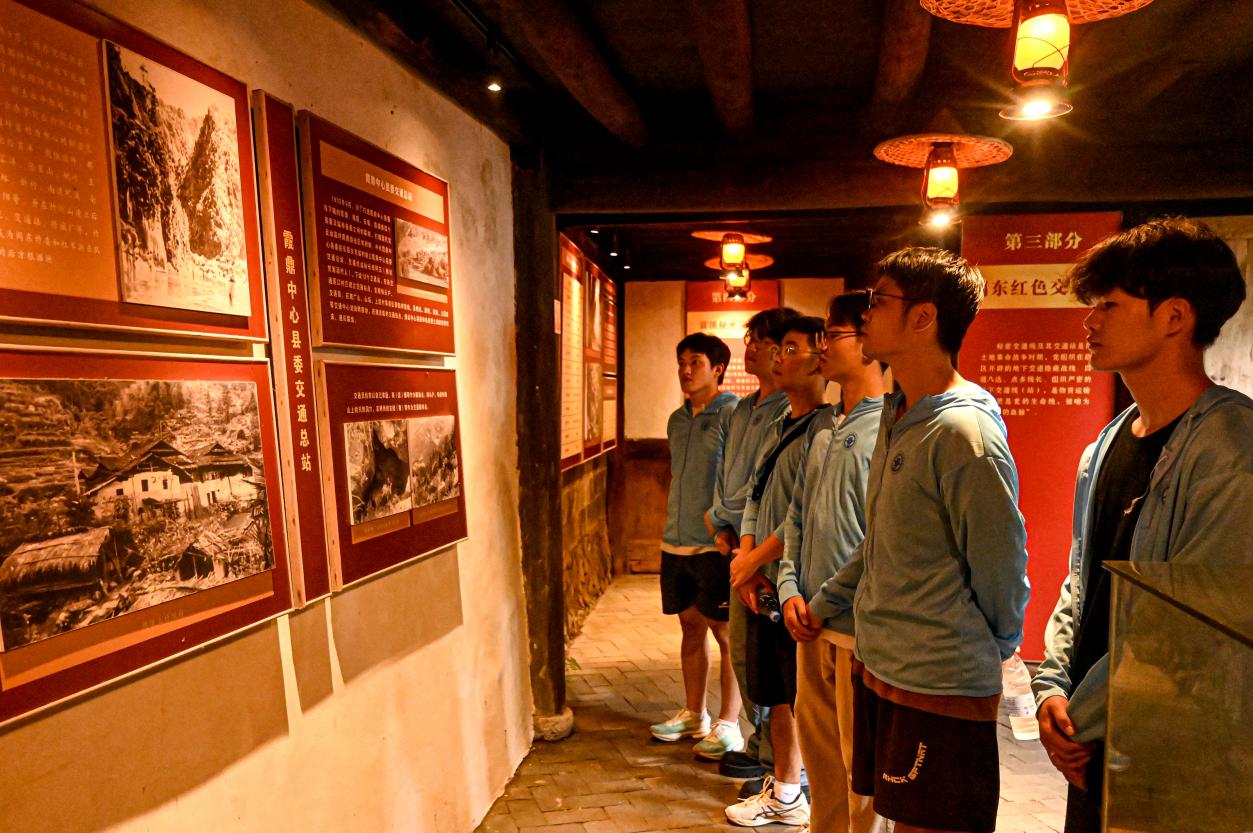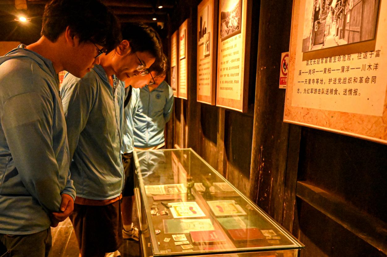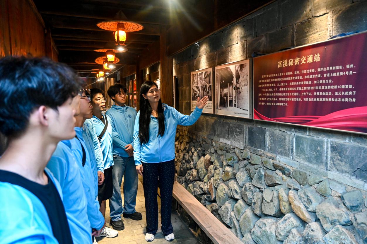 (實(shí)踐團(tuán)成員參觀富溪鎮(zhèn)秘密交通站舊址)
