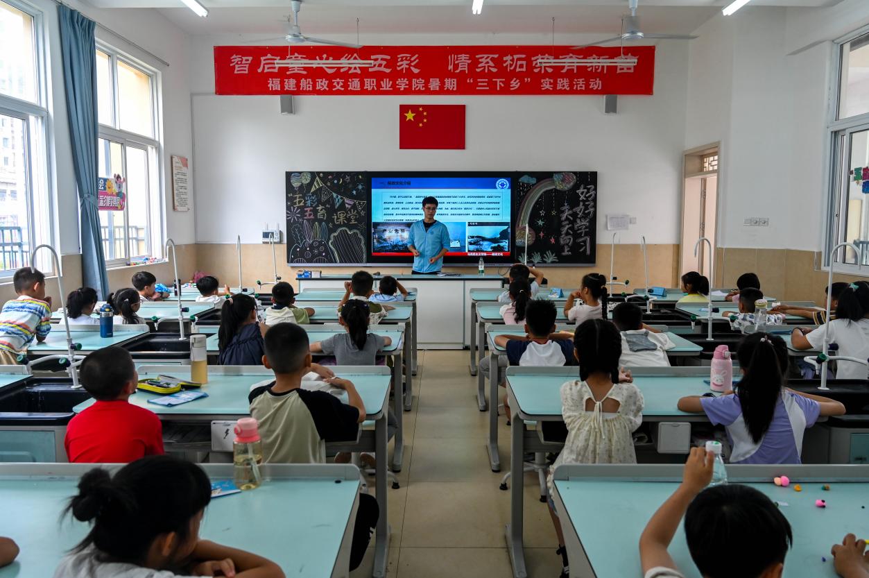 此外,“五彩五育” 愛國主義教育實(shí)踐團(tuán)還走進(jìn)鄉(xiāng)村校園,與柘榮縣第三小學(xué)的孩子們共赴一場愛國主義專題教育盛宴?;顒?dòng)中,火箭發(fā)射模型制作、船政文化思政講堂等互動(dòng)環(huán)節(jié)相映成趣,將理論宣講巧妙融入實(shí)踐操作,讓一顆顆愛國種子在孩子們純凈的心田扎根生長。這不僅引導(dǎo)他們自幼便樹立 “愛國、勵(lì)志、求真、力行” 的正確價(jià)值觀,更讓深沉熾熱的家國情懷如春雨般潛移默化,浸潤心靈深處、鐫刻精神內(nèi)核。