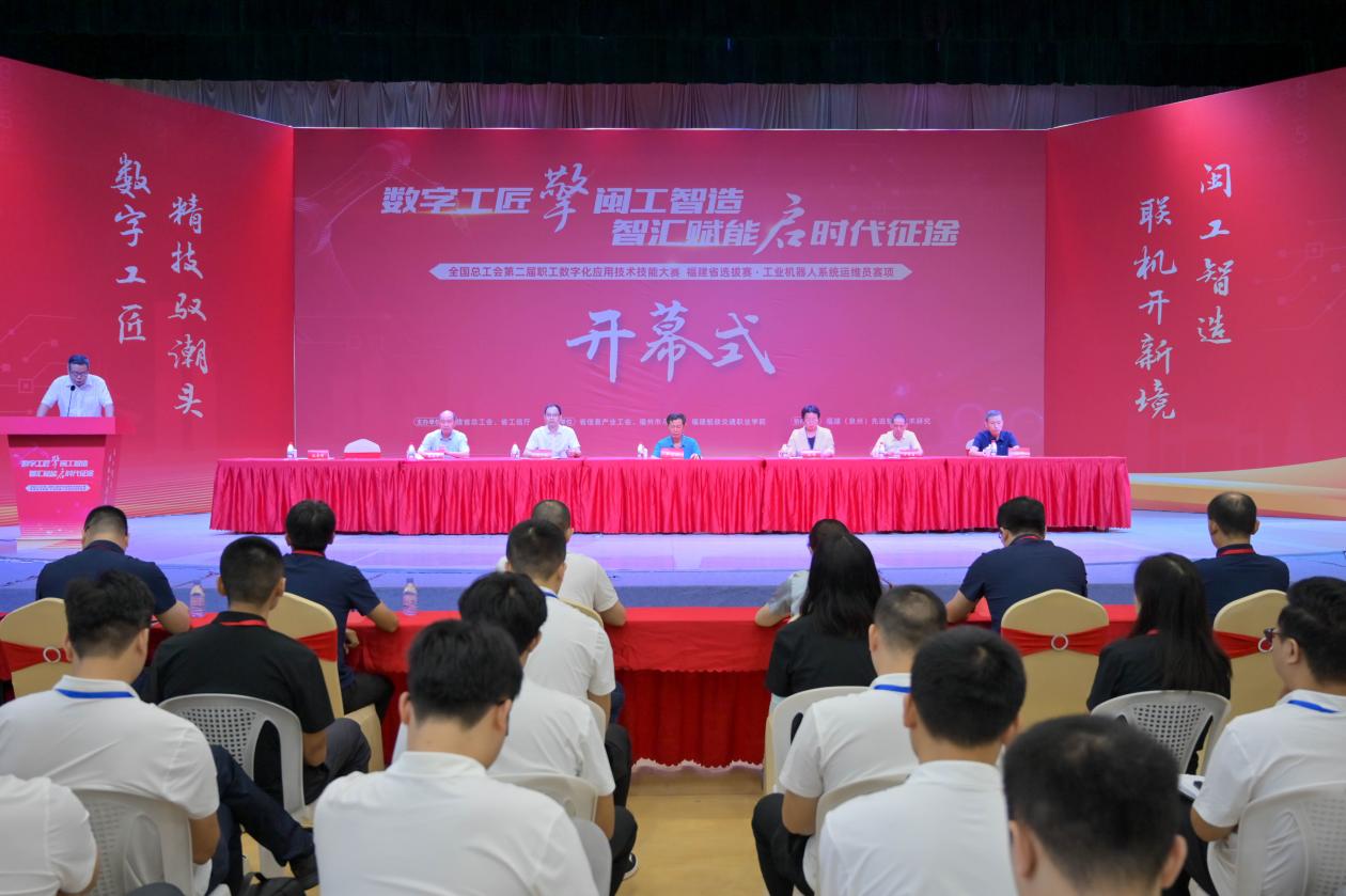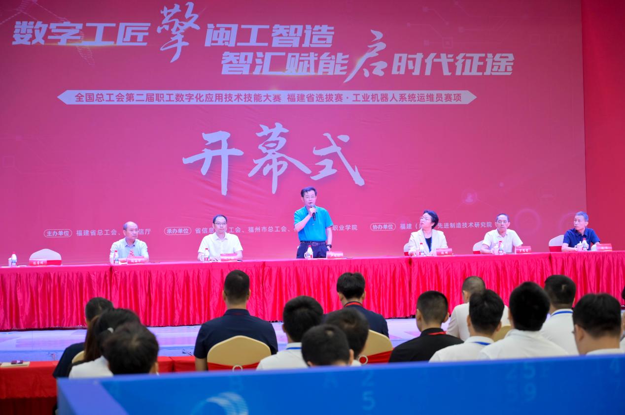 2025 年 8 月 22 日,全國(guó)總工會(huì)第二屆職工數(shù)字化應(yīng)用技術(shù)技能大賽福建選拔賽-工業(yè)機(jī)器人系統(tǒng)運(yùn)維員賽項(xiàng)在福建船政交通職業(yè)學(xué)院正式拉開帷幕。此次賽事是貫徹落實(shí)黨中央關(guān)于推進(jìn)數(shù)字經(jīng)濟(jì)、數(shù)字中國(guó)建設(shè)重要要求的具體實(shí)踐,旨在提升職工數(shù)字技能,助力產(chǎn)業(yè)數(shù)字化轉(zhuǎn)型。福建省總工會(huì)黨組成員、經(jīng)費(fèi)審查委員會(huì)主任、一級(jí)巡視員盧明琪,福建船政交通職業(yè)學(xué)院黨委副書記、工會(huì)主席張輝,福建省信息產(chǎn)業(yè)工會(huì)二級(jí)調(diào)研員羅有貴,福州市總工會(huì)黨組成員、四級(jí)調(diào)研員陶海華出席大賽開幕式,大賽裁判組、技術(shù)保障團(tuán)隊(duì)及所有參賽選手參加開幕式。開幕式由福建船政交通職業(yè)學(xué)院副院長(zhǎng)陳常暉主持。