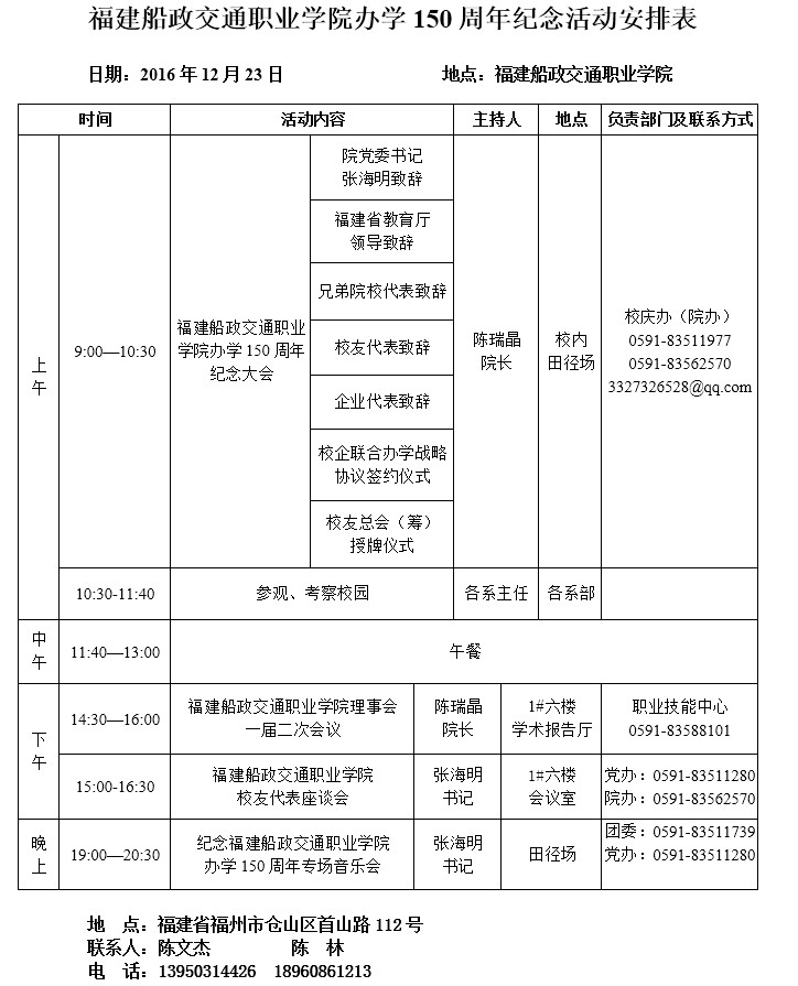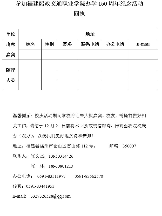 福建船政交通職業(yè)學(xué)院辦學(xué)150周年紀(jì)念活動邀請函