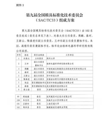 我院鄒澤昌老師入選“全國模具標(biāo)準(zhǔn)化技術(shù)委員會”委員