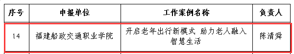 近日,福建省教育廳印發(fā)《關于公布2024年省級“智慧助老”優(yōu)質工作案例和課程資源推介名單的通知》,本次推介名單共公布了20個優(yōu)質工作案例及25門優(yōu)質課程資源,我校《開啟老年出行新模式 助力老人融入智慧生活》入選優(yōu)質工作案例,《晚年出行新模式》入選優(yōu)質課程資源。