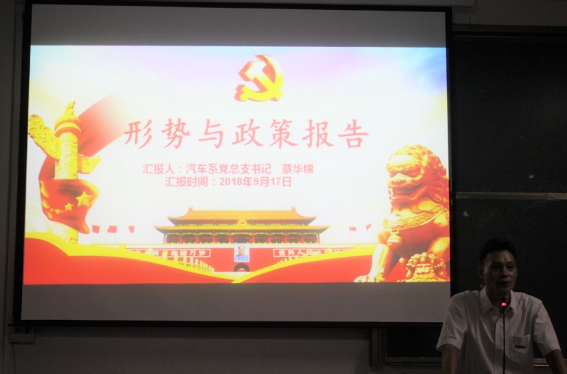 2018年9月17日,在福建船政交通職業(yè)學(xué)院北區(qū)22號樓407教室進(jìn)行了“用新思想武裝頭腦 在新時代書寫人生華章”的報(bào)告。參加了報(bào)告的有汽車系教工黨員代表以及各班臨時負(fù)責(zé)人、優(yōu)秀學(xué)生代表。報(bào)告由汽車系總支部書記蔡華錦同志主持。