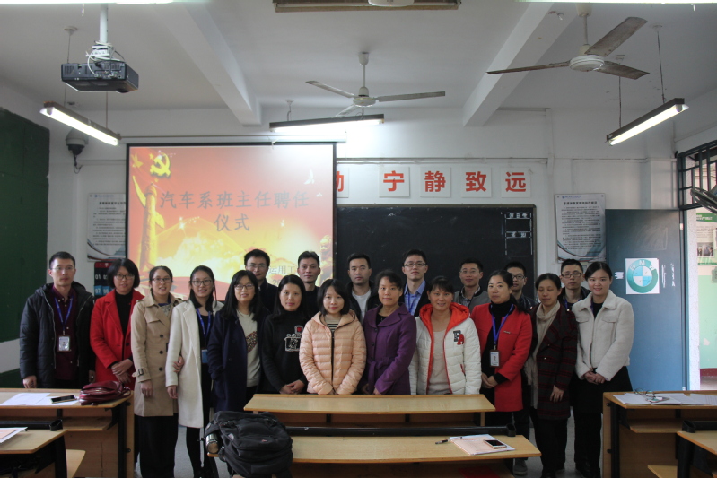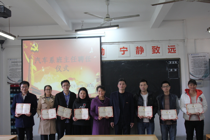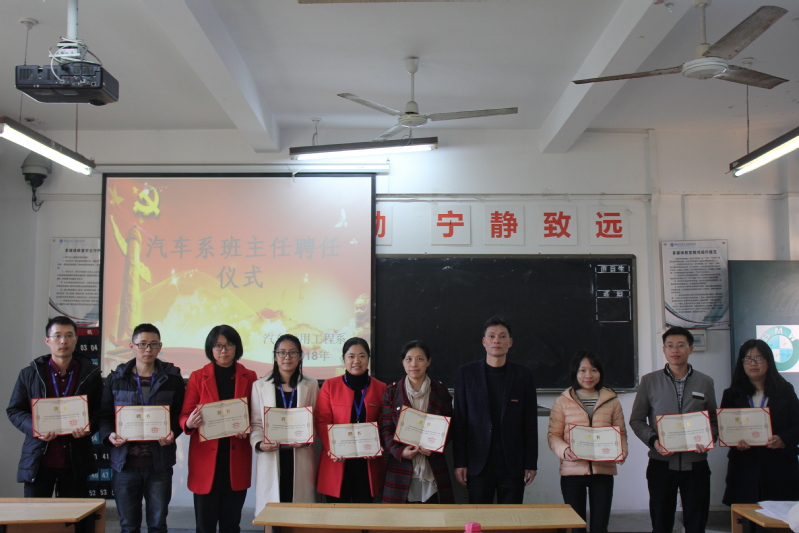 2018年12月26日,福建船政交通職業(yè)學院汽車運用工程系“2018級新生班級班主任聘任儀式”在北區(qū)22號樓汽西203教室隆重舉行。汽車運用工程系黨總支書記蔡華錦主持儀式,為今年新當選的18位班主任頒發(fā)聘書,并一同合影留念。