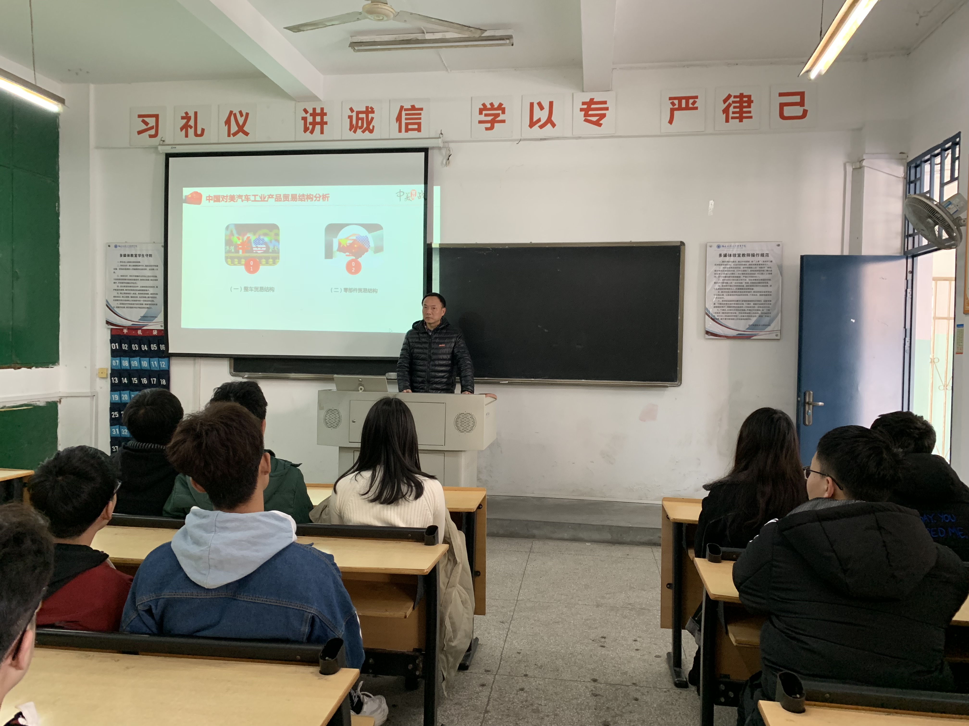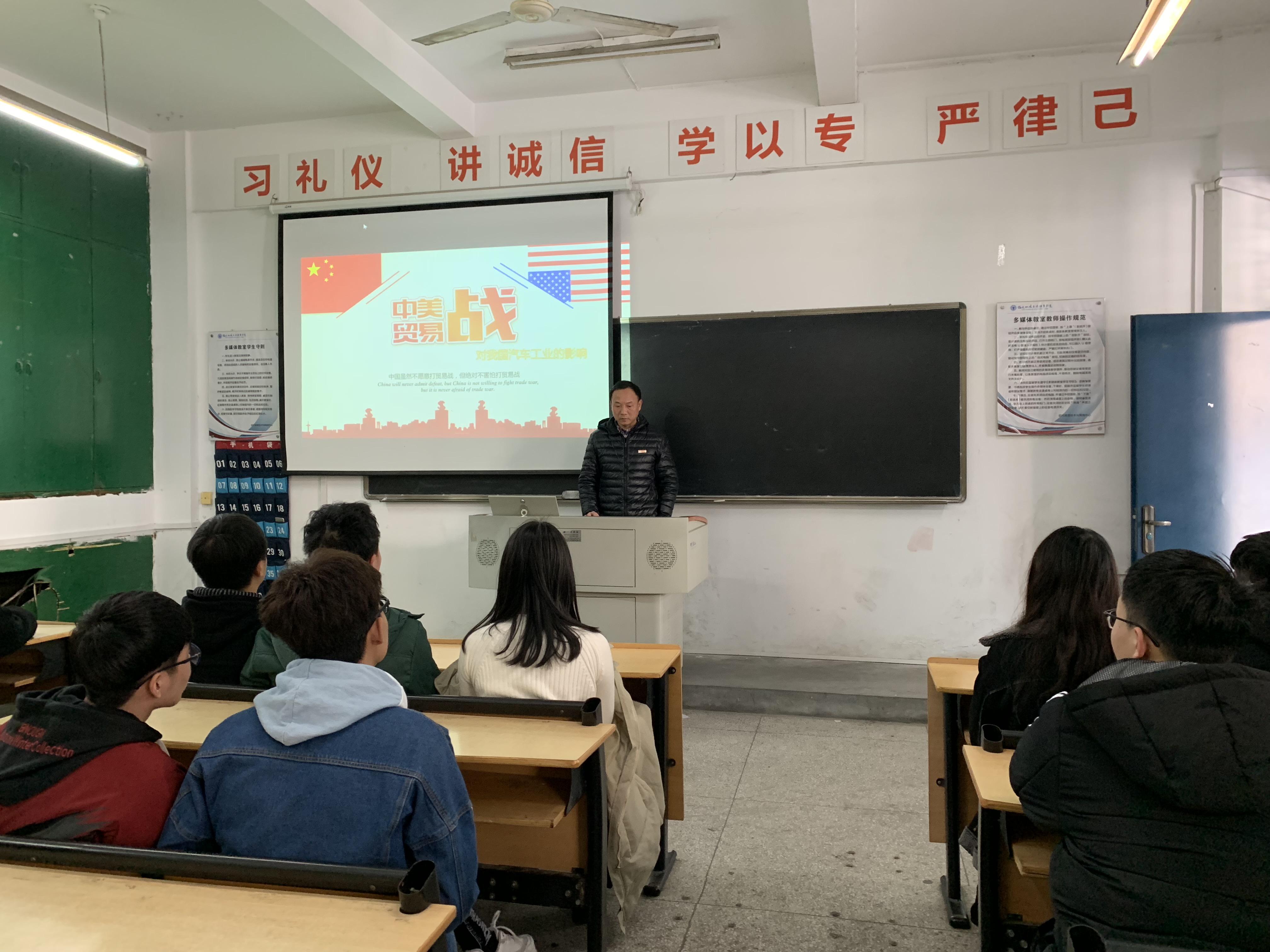 2018年11月30日,張榮貴主任在汽車運(yùn)用工程系22號樓103教室進(jìn)行了以“中美貿(mào)易摩擦對我國汽車工業(yè)的影響”為主題的報(bào)告。參加了此次形勢與政策講座的有汽車系教工黨員代表以及各班班長、團(tuán)支書和優(yōu)秀學(xué)生代表。