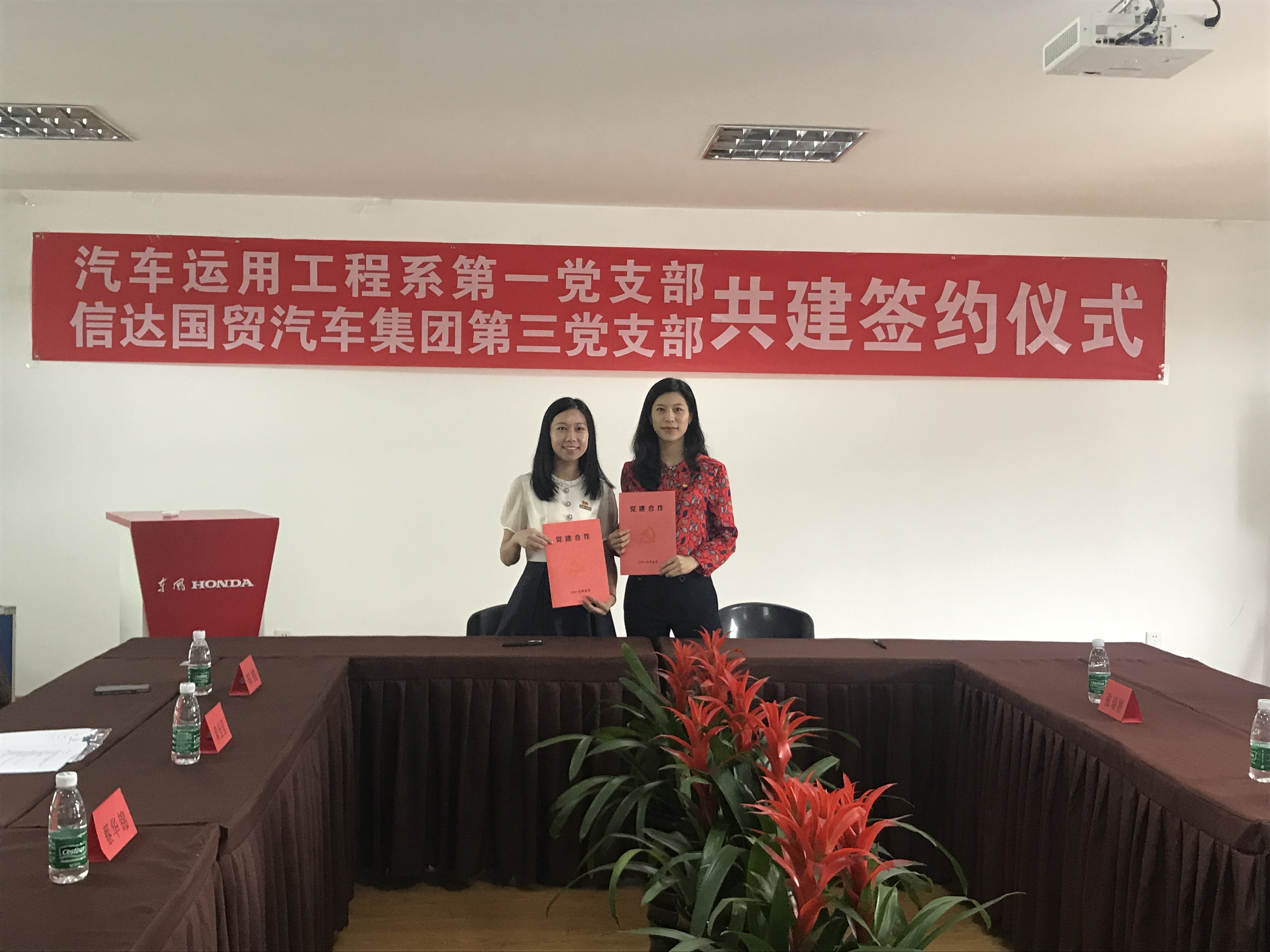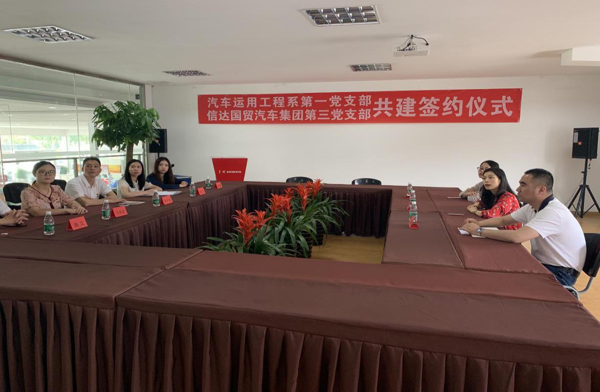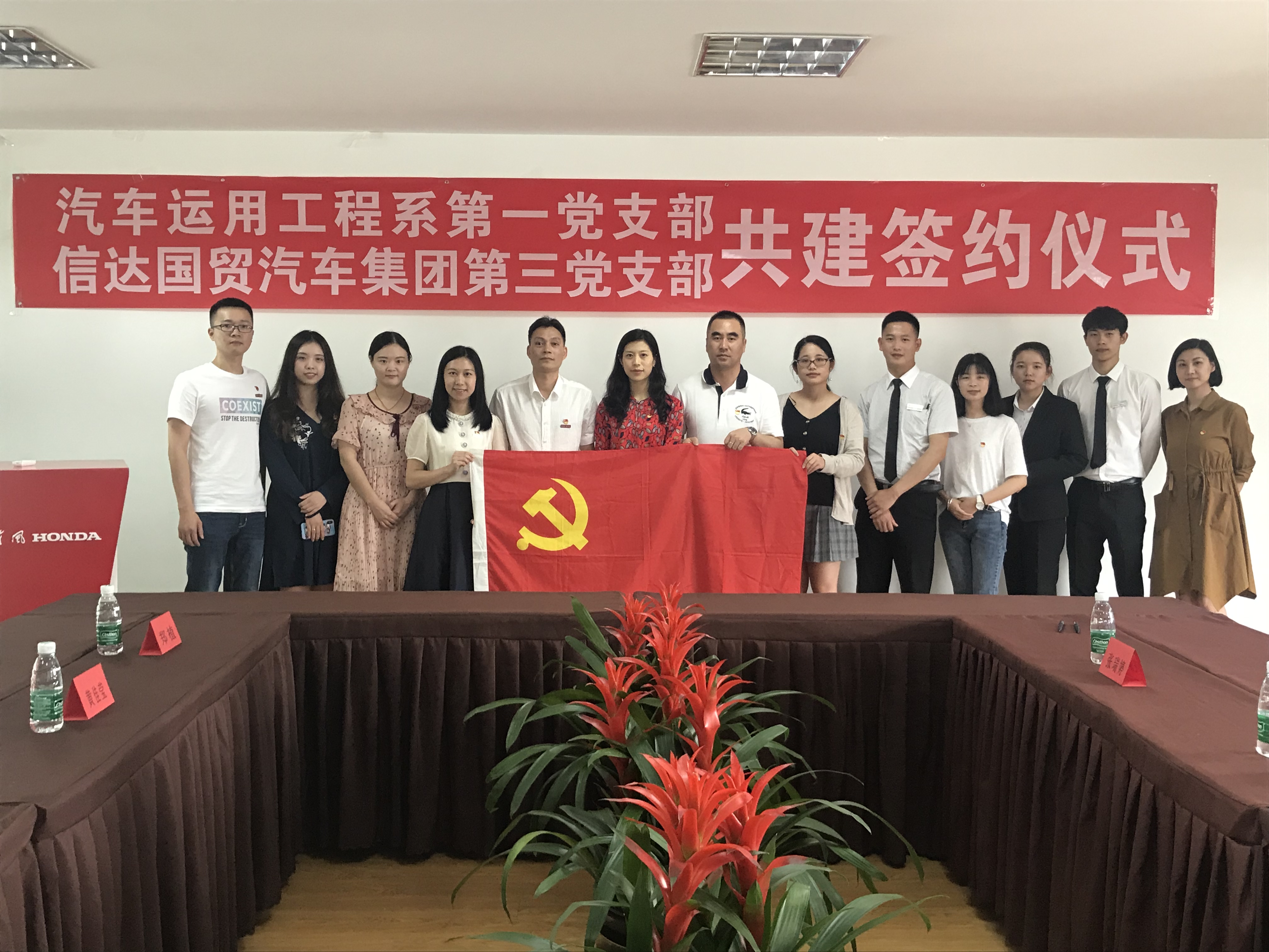 加強(qiáng)黨建工作,推動(dòng)校企基層黨組織交流、合作與共同發(fā)展,2019年5月13日下午,福建船政交通職業(yè)學(xué)院汽車運(yùn)用工程系第一黨支部和信達(dá)國(guó)貿(mào)汽車第三黨支部在福州華夏汽車城內(nèi)簽訂了黨支部合作共建協(xié)議。