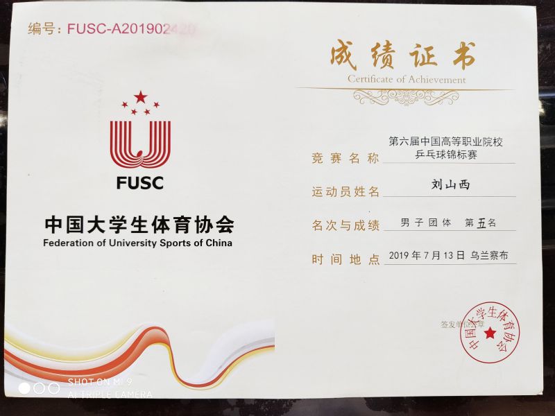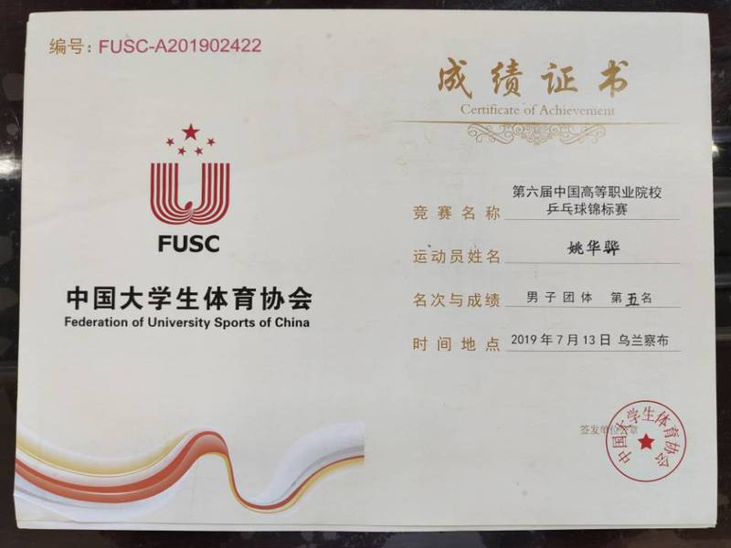 2019年7月10日至13日,我系2018級(jí)汽車營(yíng)銷與服務(wù)1班學(xué)生姚華驊、2017級(jí)汽車運(yùn)用與維修技術(shù)1班劉山西等同學(xué),在內(nèi)蒙古烏蘭察布職業(yè)學(xué)院舉行的第六屆中國(guó)高職院校乒乓球錦標(biāo)賽中,通過(guò)與全國(guó)33所院校近180名運(yùn)動(dòng)員的激烈角逐,最終獲得全國(guó)男子團(tuán)體第五名的歷史最好成績(jī)。