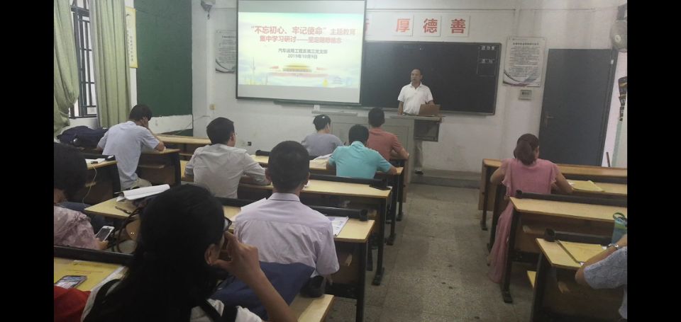 2019年10月9日,汽車系第三黨支部全體黨員,圍繞“不忘初心、牢記使命”主題教育開展第二次專題學(xué)習(xí)研討,主題為堅(jiān)定理想信念。會(huì)上,張榮貴老師做重點(diǎn)發(fā)言,詹華和呂翱老師互動(dòng)發(fā)言。張老師指出堅(jiān)定理想信念,必須堅(jiān)定“三個(gè)自信”,理想信念是共產(chǎn)黨人精神上的鈣。作為黨員領(lǐng)導(dǎo)干部,一定要堅(jiān)定理想信念,最關(guān)鍵在于堅(jiān)定“三個(gè)自信”,即道路自信、理論自信、制度自信。作為在船政工作的同志,要深刻理解“三個(gè)自信”,切實(shí)增強(qiáng)“三個(gè)自信”,自覺圍繞“四個(gè)全面”謀劃工作,自覺圍繞貫徹落實(shí)《若干意見》加快學(xué)校振興發(fā)展來推進(jìn)工作。