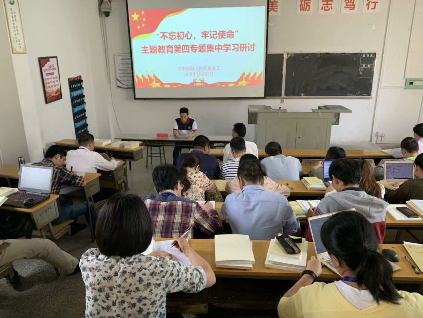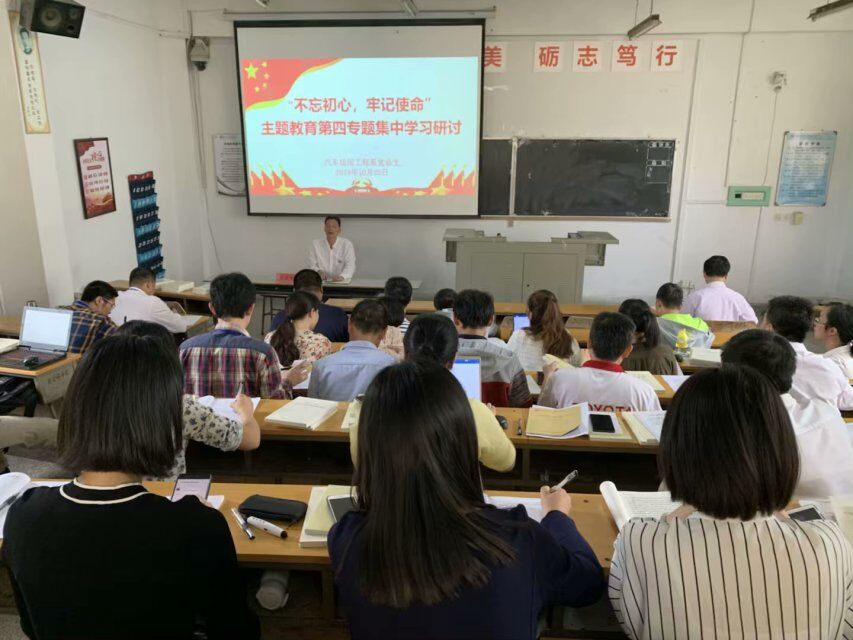 按照汽車運用工程系黨總支“不忘初心、牢記使命”主題教育學(xué)習(xí)研討方案安排,10月22日下午,系黨總支召開主題教育第四專題集中學(xué)習(xí)研討會。系部全體教職工黨員參加了會議。