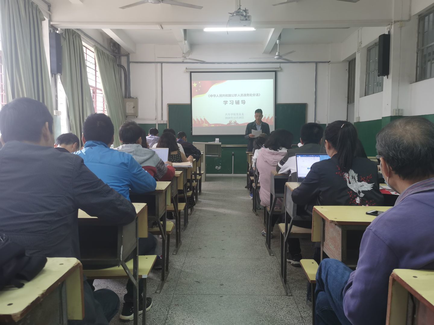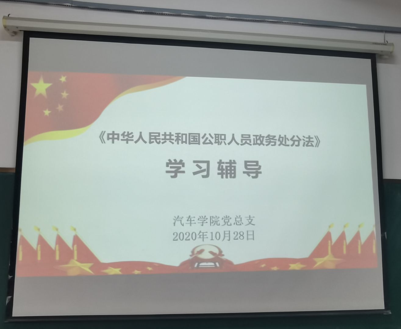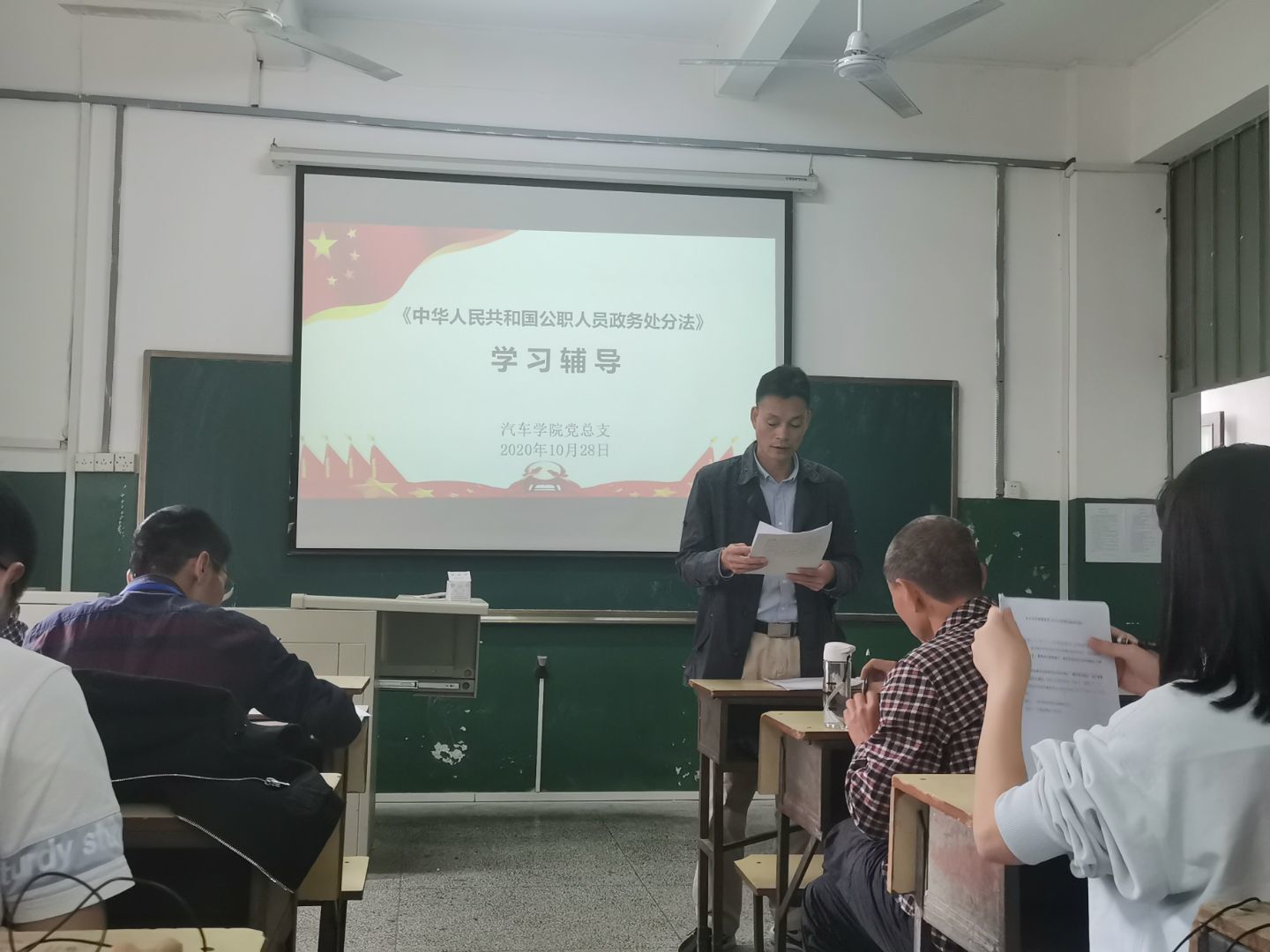 2020年10月28日下午在10號樓104教室,汽車學(xué)院全體教職工開展《政務(wù)處分法》學(xué)習(xí)會。