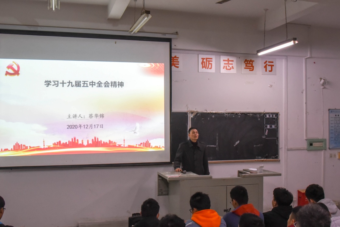 12月17日,學院黨總支書記蔡華錦在北區(qū)22號樓第二階梯教室作學習貫徹黨的十九屆五中全會精神宣講報告,汽車學院100多名學生參加報告會。