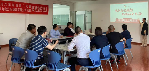 隨后學(xué)院第三黨支部和企業(yè)黨支部互相贈(zèng)送黨員學(xué)習(xí)教材;并由第三黨支部副書記為企業(yè)黨員們上了一堂《學(xué)好四史 牢記初心使命》的黨課,引導(dǎo)現(xiàn)場(chǎng)黨員不忘記初心使命,朝著學(xué)史明理、學(xué)史增信、學(xué)史崇德、學(xué)史力行等方向前進(jìn)。
