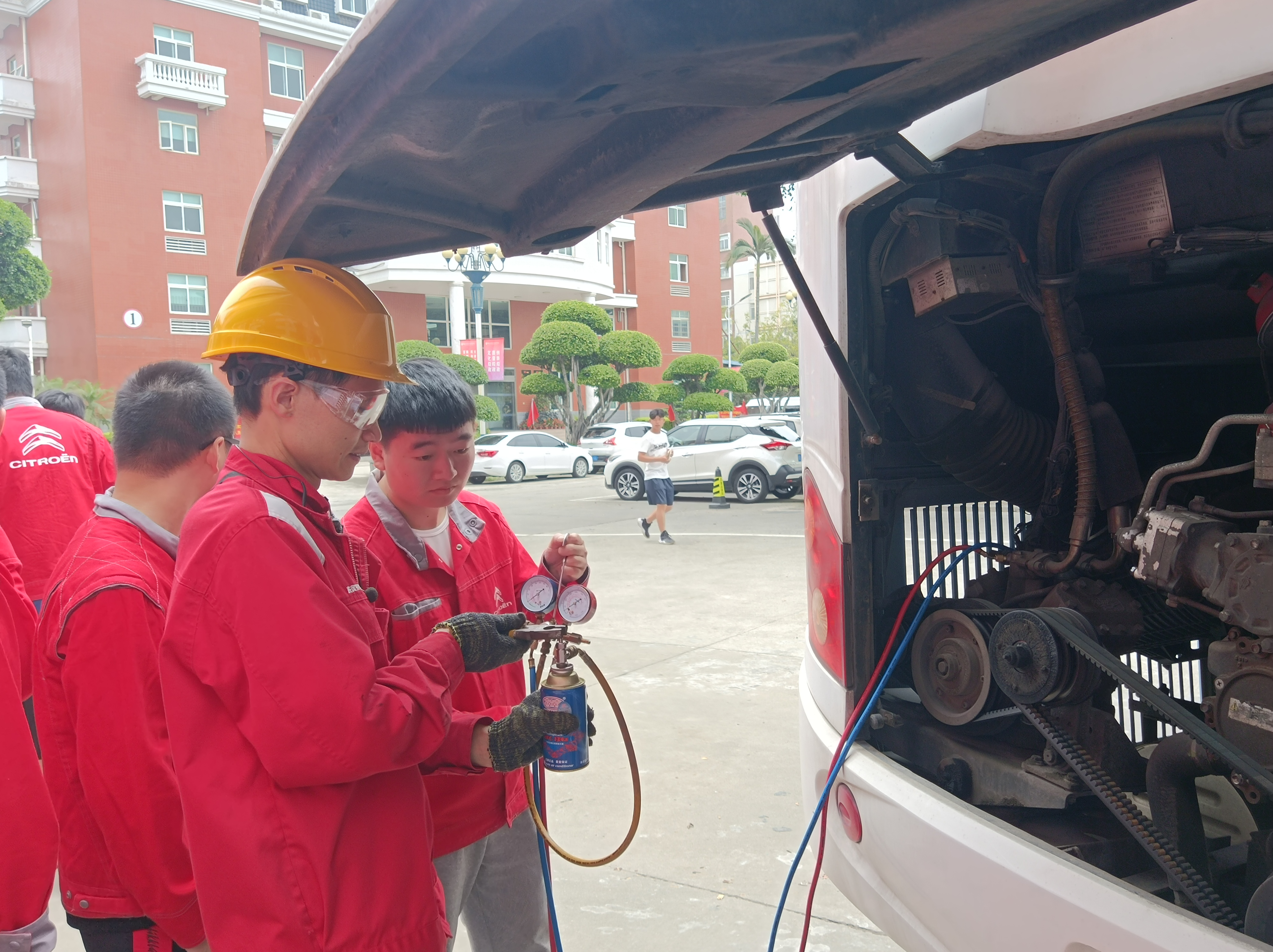 5月23日,天高氣爽,汽車學(xué)院開啟了職教周活動(dòng)之“空調(diào)檢測(cè)與加氨”。