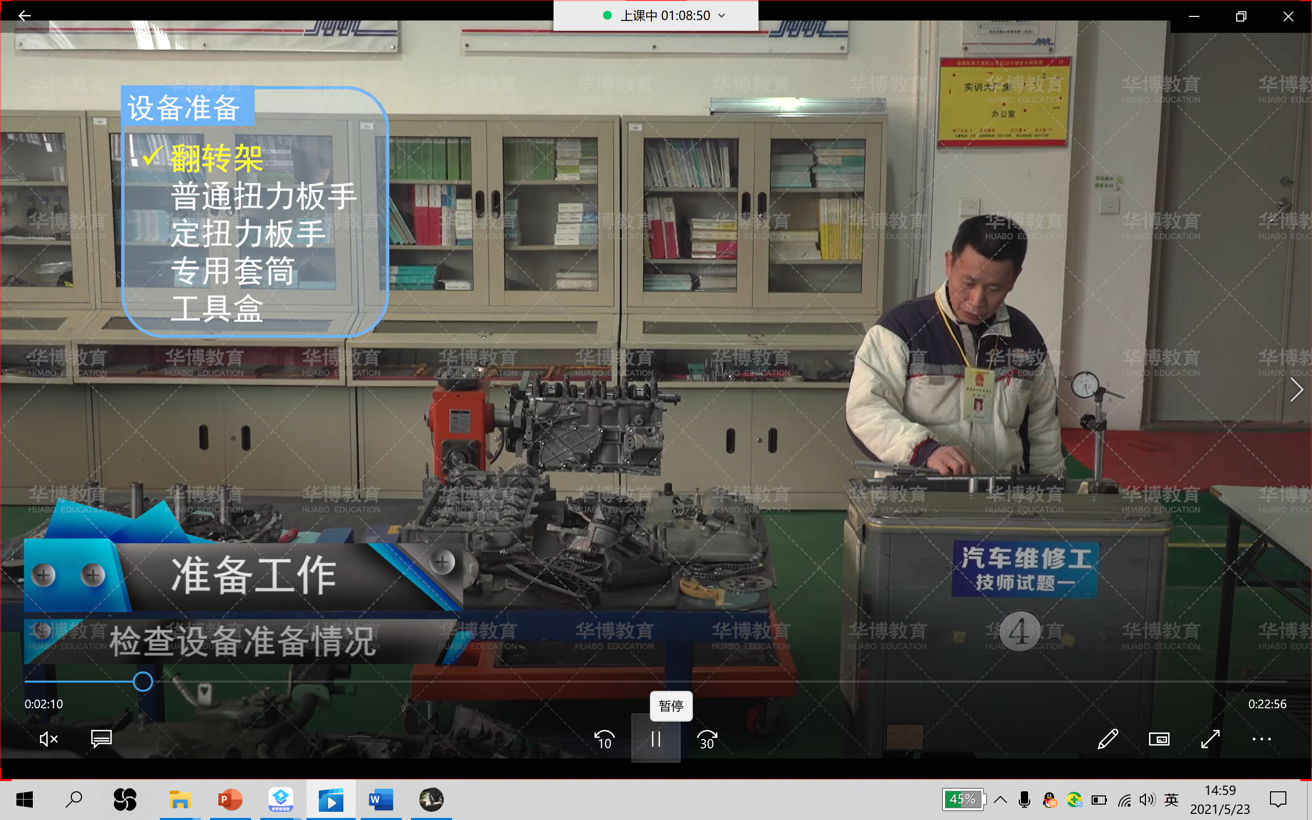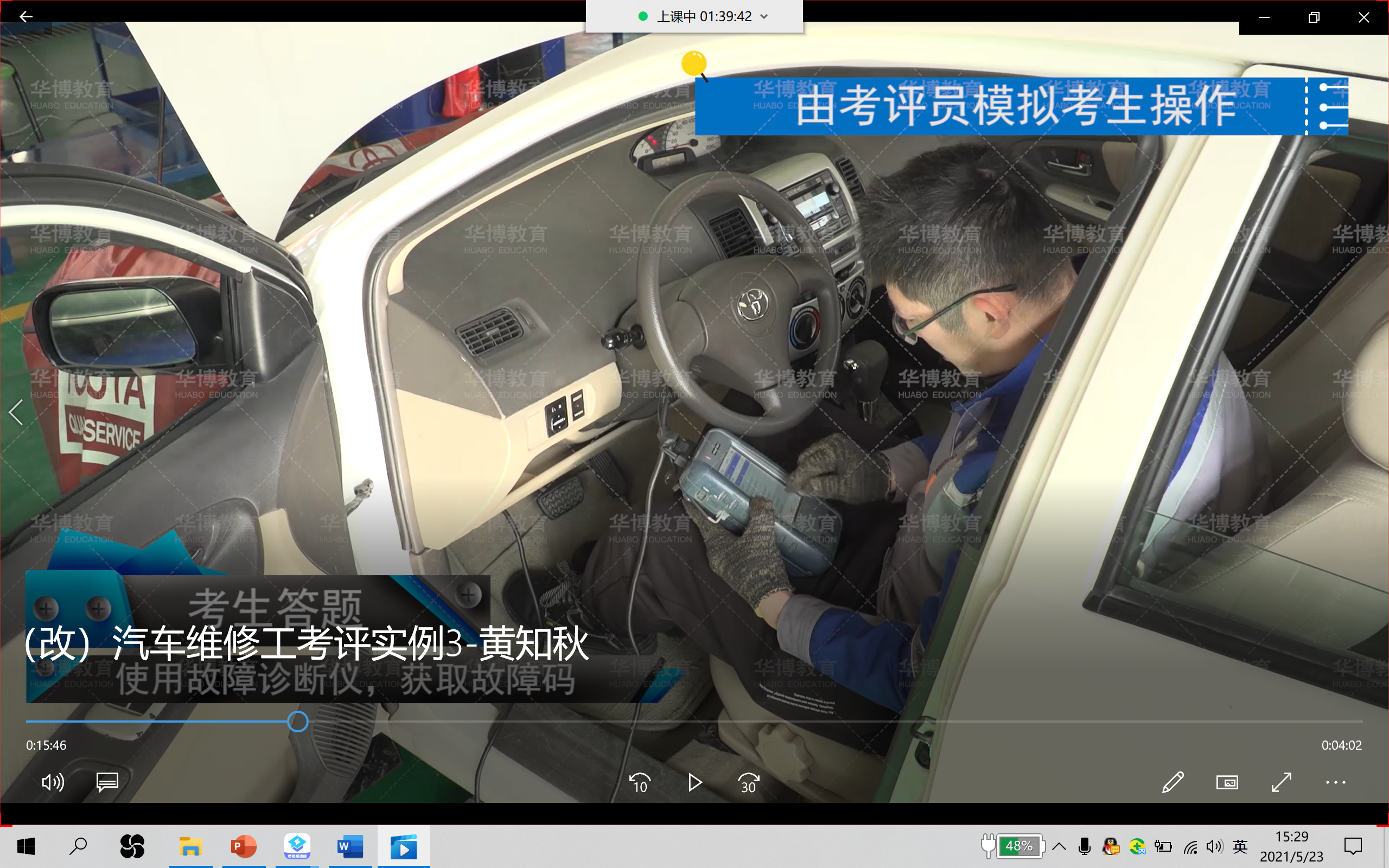隨后,展示了兩段典型的汽車維修工高級(jí)的實(shí)操考核視頻,分別是汽車測(cè)量或檢驗(yàn)類考題(曲軸拆裝及檢測(cè))和故障診斷類考題(發(fā)動(dòng)機(jī)怠速不穩(wěn)的故障診斷)。