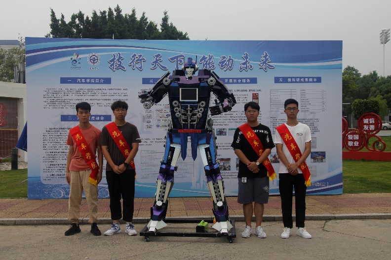 創(chuàng)意設(shè)計(jì)大賽初期,在學(xué)院領(lǐng)導(dǎo)的指導(dǎo)下,根據(jù)汽車學(xué)院特色,開展汽車配件DIY設(shè)計(jì)活動。鈑金噴漆專業(yè)實(shí)訓(xùn)教師陳星老師,利用實(shí)訓(xùn)室報(bào)廢的汽車配件組織汽車創(chuàng)享俱樂部成員進(jìn)行設(shè)計(jì)開發(fā),確定設(shè)計(jì)模型,開展制作工作。在兩個月多的制作時間里,大家克服材料不足,時間緊張等困難,經(jīng)常加班到深夜,陳星老師工作精益求精,發(fā)揮工匠精神,最后打磨出了身高2米5,可以進(jìn)行人機(jī)交互的鋼鐵汽車智能機(jī)器人,一經(jīng)亮相,驚艷到了學(xué)校師生。許多老師紛紛發(fā)出預(yù)定需求,后期汽車學(xué)院和汽車創(chuàng)享俱樂部將結(jié)合師生需求,開展小型汽車配件DIY活動。