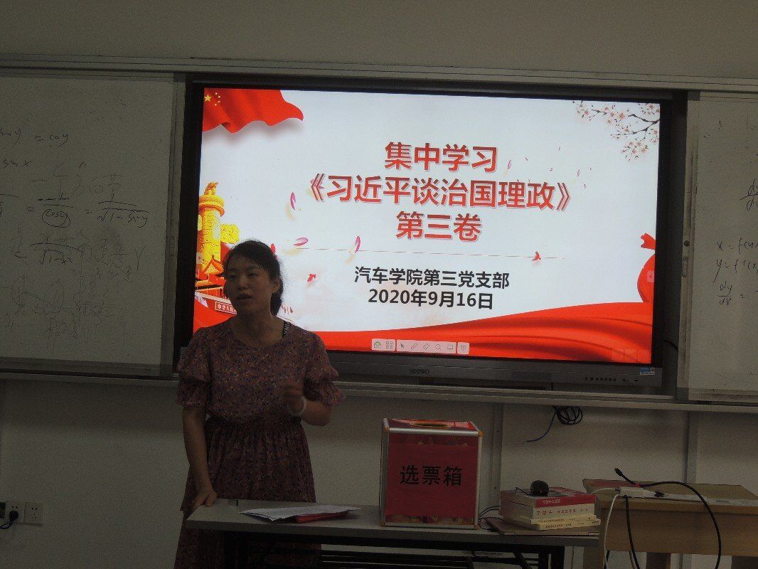 2020年9月16日,汽車學(xué)院各黨支部召開《習(xí)近平談治國理政》學(xué)習(xí)研討會。