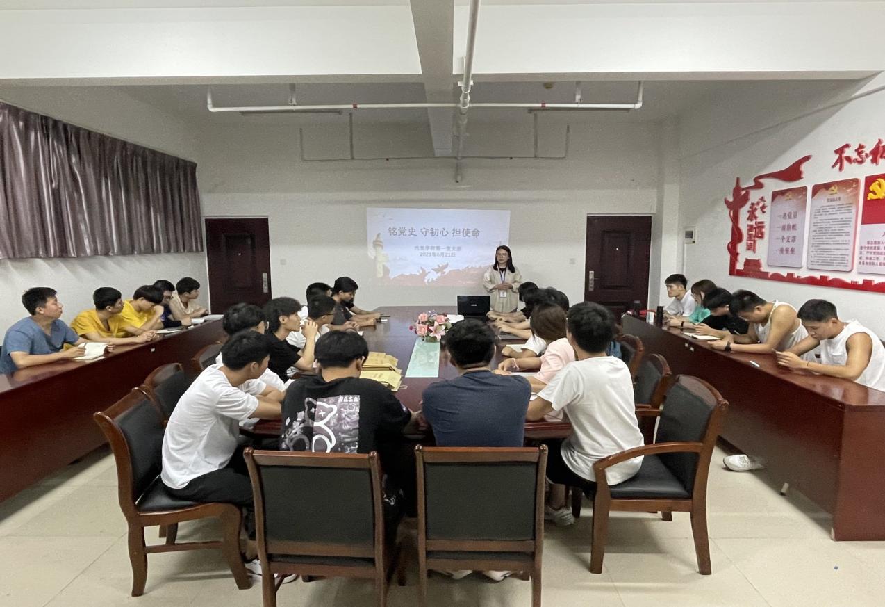 為慶祝中國(guó)共產(chǎn)黨建黨100周年,進(jìn)一步增強(qiáng)黨組織的凝聚力和戰(zhàn)斗力,進(jìn)一步強(qiáng)化全體預(yù)備黨員的黨性意識(shí),激勵(lì)預(yù)備黨員堅(jiān)定愛黨、為黨理想信念,2021年6月21日晚,汽車學(xué)院第一黨支部書記姚美妃組織黨員于圖書館九樓會(huì)議室開展“銘黨史、守初心、擔(dān)使命”活動(dòng),在回顧往昔中感懷黨恩,在重溫誓言中銘記宗旨。