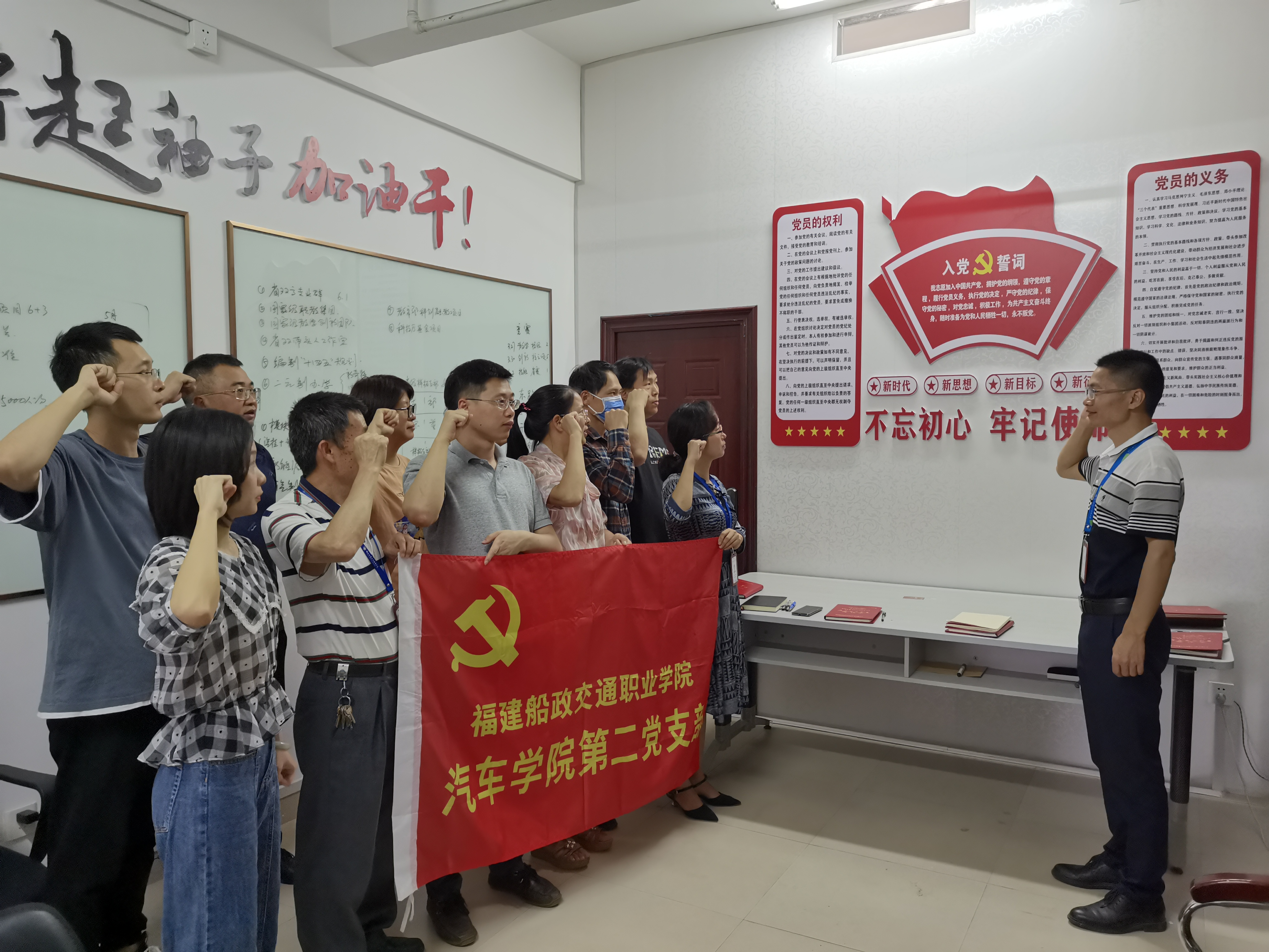 為慶祝中國(guó)共產(chǎn)黨成立100周年,大力營(yíng)造愛(ài)黨、信黨、跟黨走的濃厚氛圍,推動(dòng)黨史學(xué)習(xí)教育深入開(kāi)展,汽車(chē)學(xué)院第二黨支部于2021年6月25日舉行“重溫入黨誓詞 致敬百年華誕”活動(dòng)。