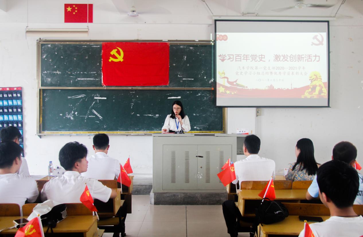 為慶祝中國共產(chǎn)黨成立100周年,以開展黨史學(xué)習(xí)教育為契機(jī),團(tuán)結(jié)帶領(lǐng)青年以習(xí)近平新時代中國特色社會主義思想為指引,在七一建黨節(jié)來臨之際,2021年6月30日下午,汽車學(xué)院第一黨支部于26號樓舉行學(xué)生入黨積極分子黨史學(xué)習(xí)總結(jié)暨優(yōu)秀學(xué)員表彰大會。汽車學(xué)院黨總支書記蔡華錦、全體輔導(dǎo)員及學(xué)生入黨積極分子參加總結(jié)表彰大會。