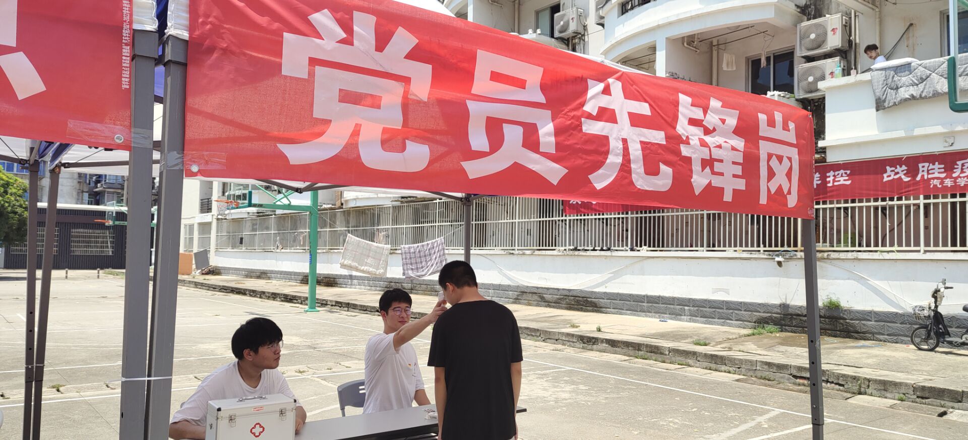黨員志愿者為返校學(xué)生進(jìn)行體溫檢測