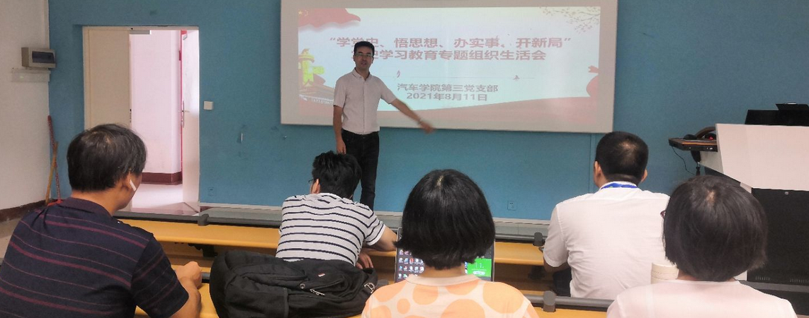 2021年8月11日,汽車學(xué)院第三黨支部根據(jù)上級(jí)黨組織通知要求,圍繞“學(xué)黨史、悟思想、辦實(shí)事、開新局”主題,認(rèn)真貫徹“學(xué)史明理、學(xué)史增信、學(xué)史崇德、學(xué)史力行”要求,組織三支部全體黨員召開黨史學(xué)習(xí)教育專題組織生活會(huì)。