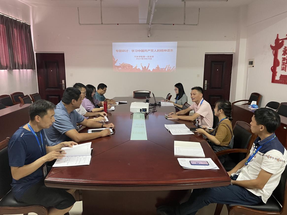 為了深入領會中國共產(chǎn)黨人精神譜系的科學內(nèi)涵,發(fā)揚紅色文化、傳承紅色基因、賡續(xù)共產(chǎn)黨人的精神血脈。2021年9月29日,汽車學院第一黨支部在圖書館九樓會議室開展專題研討,此次研討以“初心如磐,忠貞不渝”為主題。研討會由支部書記姚美妃同志主持,支部黨員參會。