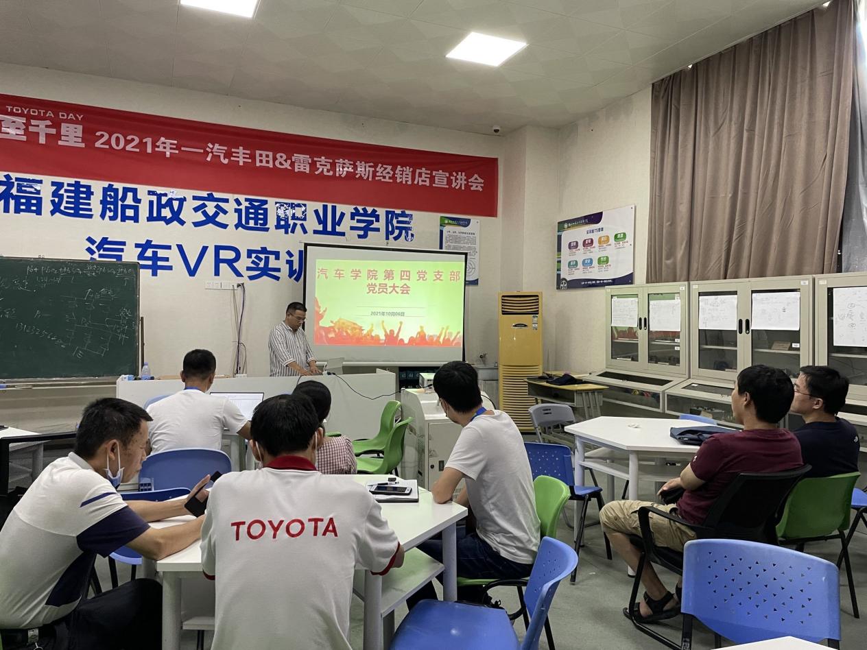 2021年10月06日下午在豐田教室,汽車學院第四黨支部副書記余庚主持召開10月黨日專題學習會。