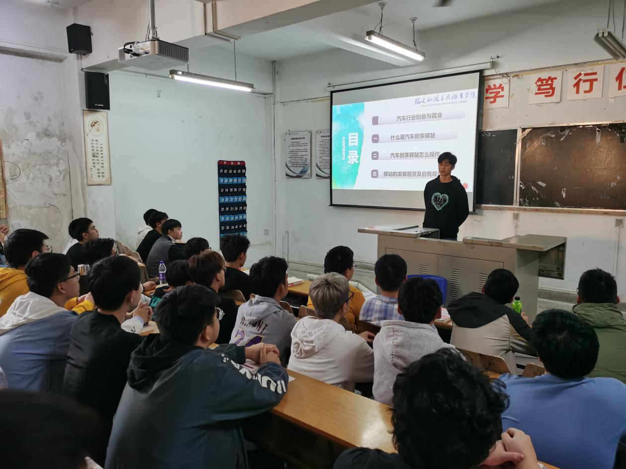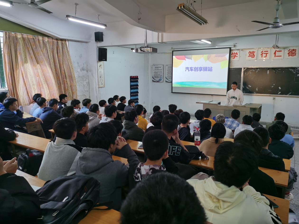 2021年11月26日,汽車創(chuàng)享驛站主要負(fù)責(zé)人,技術(shù)總監(jiān)2021屆校友,2019級(jí)汽車檢測(cè)與維修技術(shù)(3+2)專業(yè)的林鑫為2021級(jí)汽車檢測(cè)與維修技術(shù)專業(yè)的同學(xué)開展創(chuàng)業(yè)指導(dǎo)講座,分享自己在創(chuàng)業(yè)過程的經(jīng)歷。